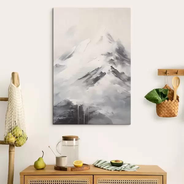 Cuadros Cumbres nevadas con sombras grises, cielo gris, pinceladas, texturizado, minimalista Nr s45932