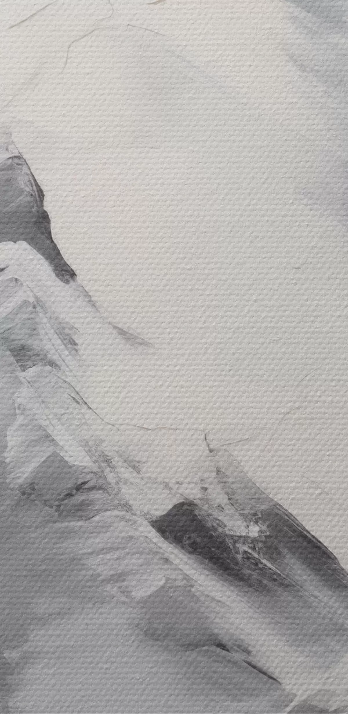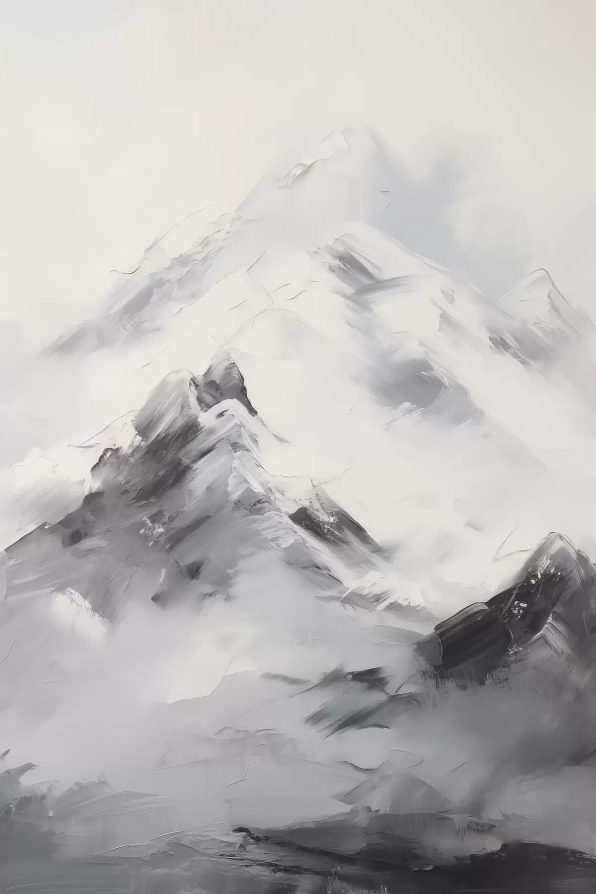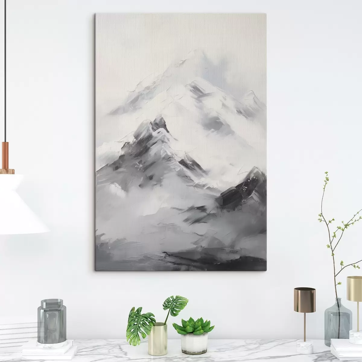 Cuadros Cumbres nevadas con sombras grises, cielo gris, pinceladas, texturizado, minimalista Nr s45933