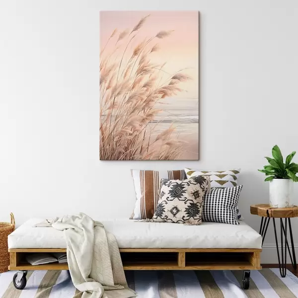 Cuadros Hierba de la pampa con una paleta de colores naranja pastel, cielo rosa claro, un paisaje tranquilo Nr s45934
