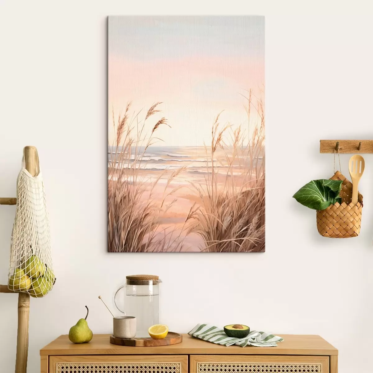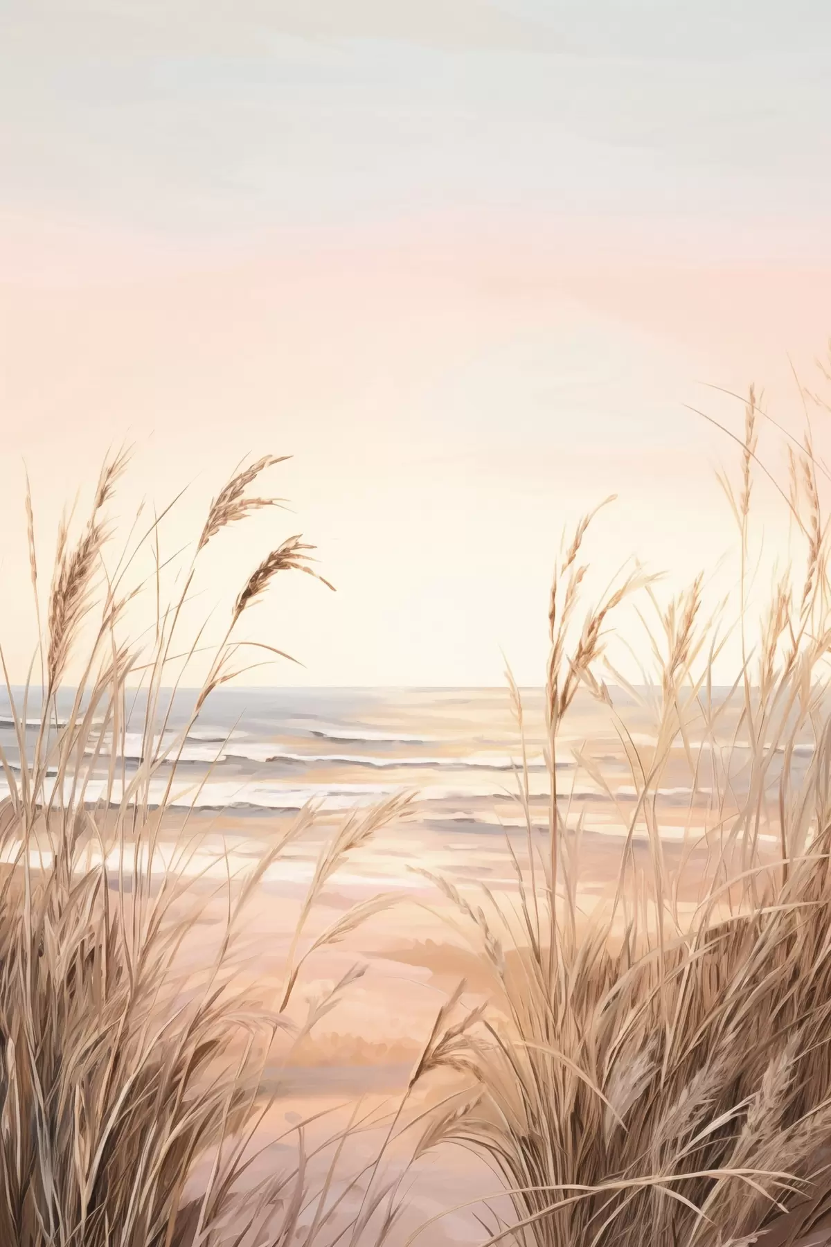 Cuadros Hierba de la pampa con una paleta de colores naranja pastel, cielo rosa claro, un paisaje tranquilo Nr s45935
