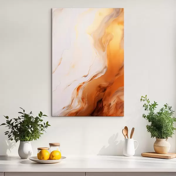 Cuadros Imitación de pintura abstracta con colores blanco y naranja, arte fluido con líneas onduladas, arte moderno Nr s45939