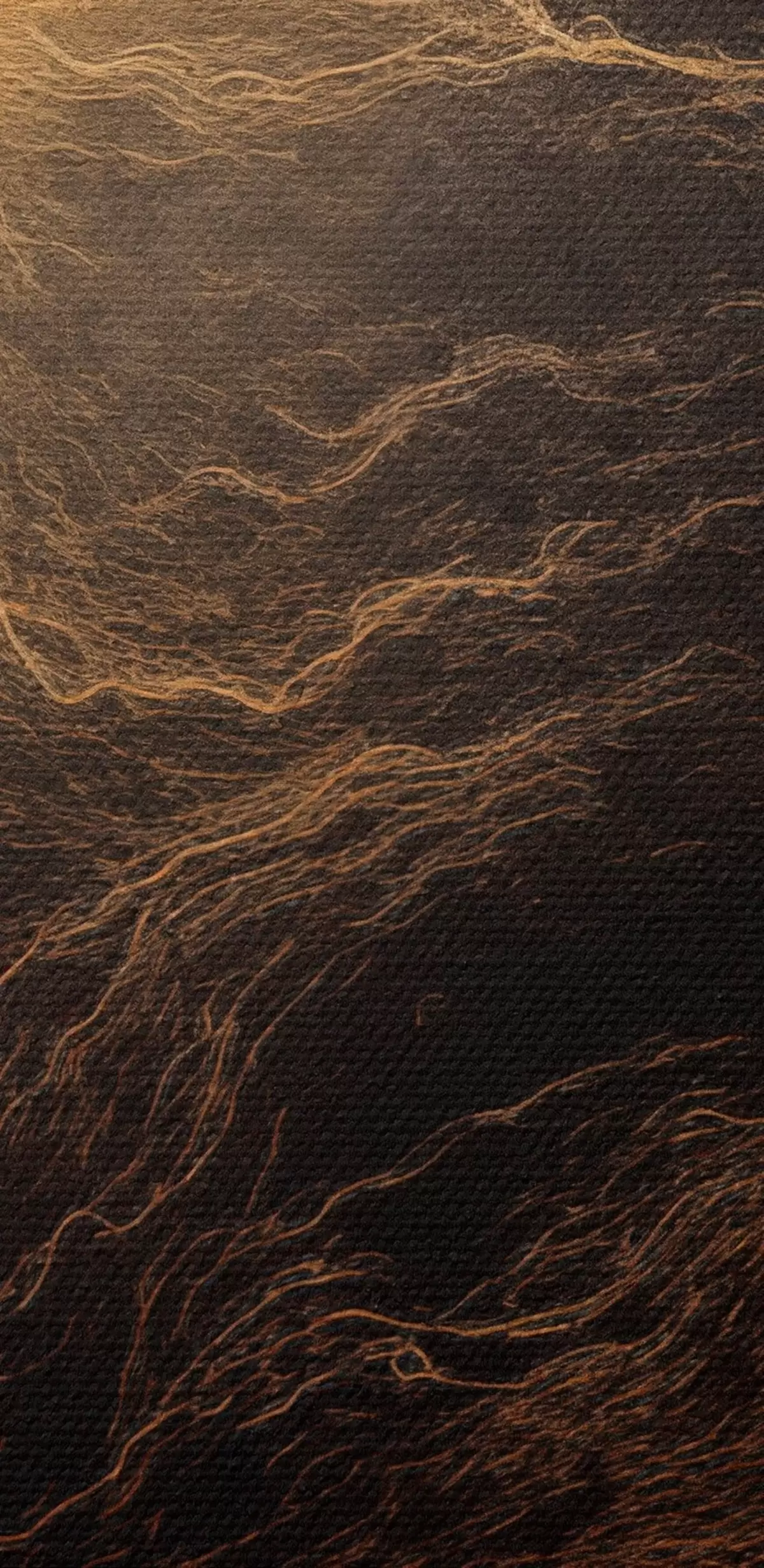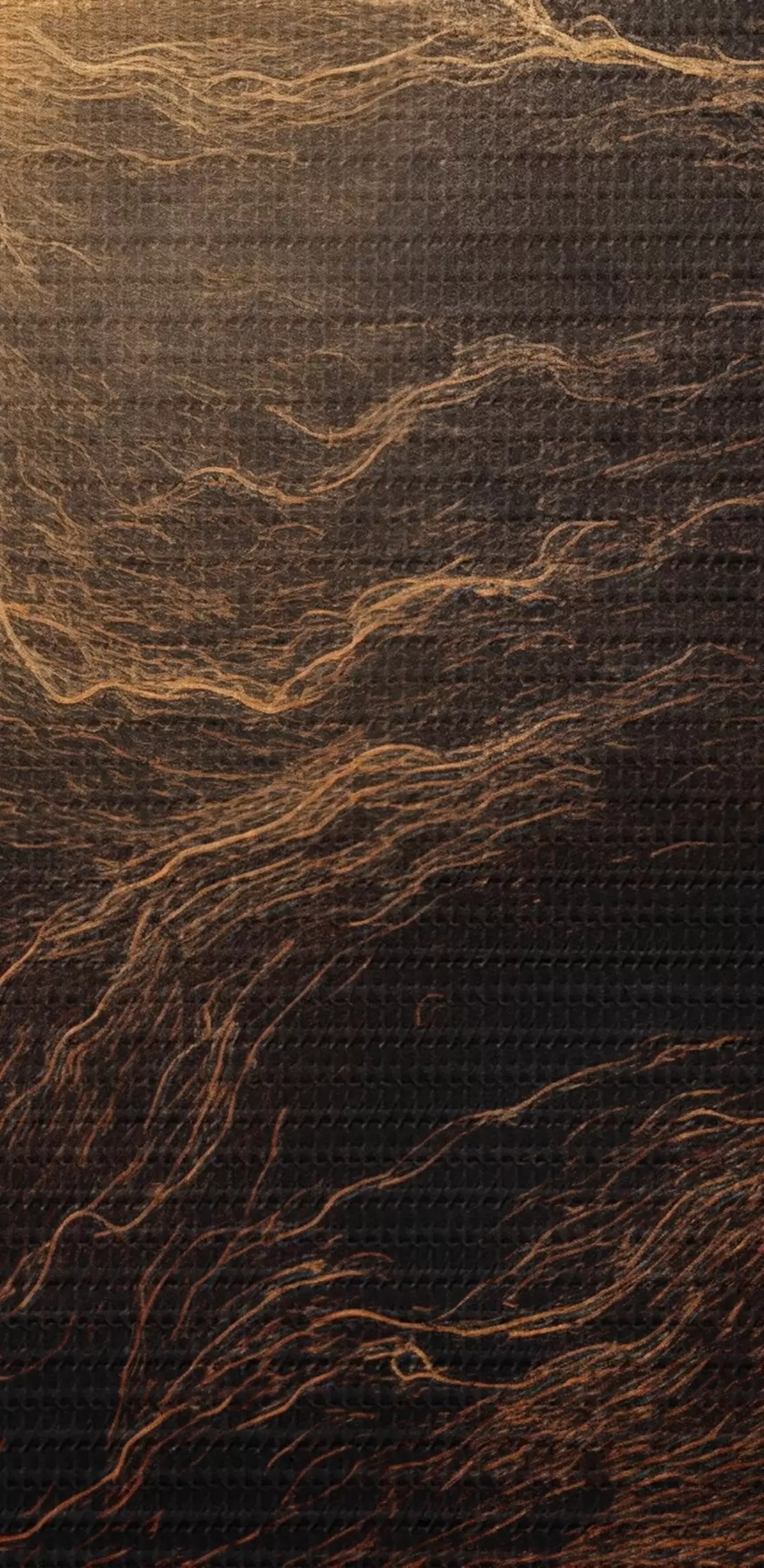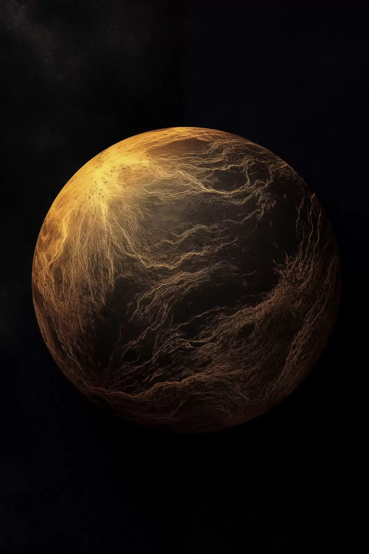 Cuadros Planeta abstracto con vetas naranjas sobre un fondo espacial negro, arte minimalista moderno Nr s45943