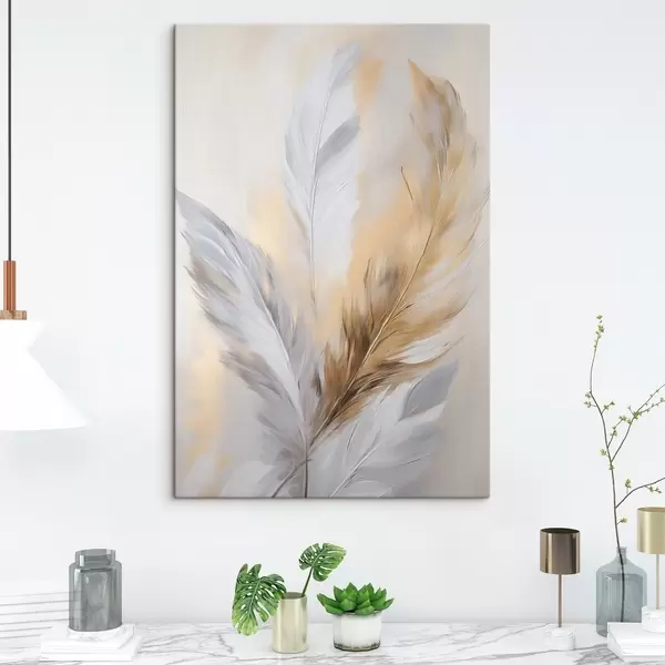 Cuadros Plumas con detalles en naranja, composición minimalista con textura, arte moderno Nr s45945