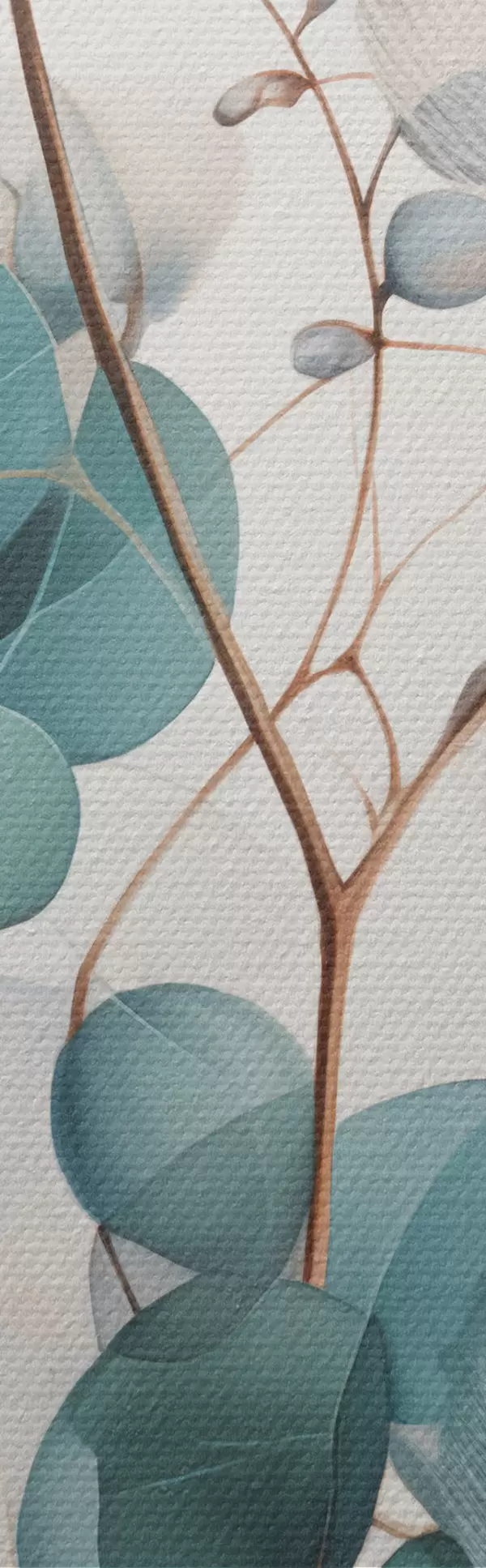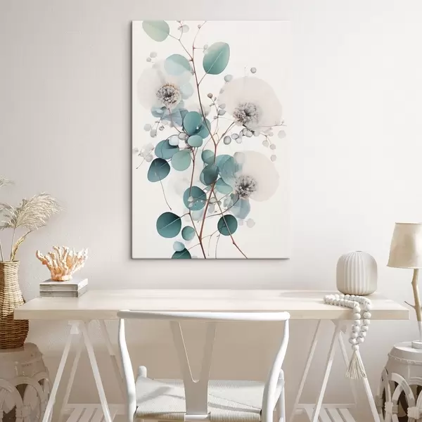 Cuadros Flores abstractas de eucalipto con pétalos blancos y hojas verdes apagadas en las ramas Nr s45946