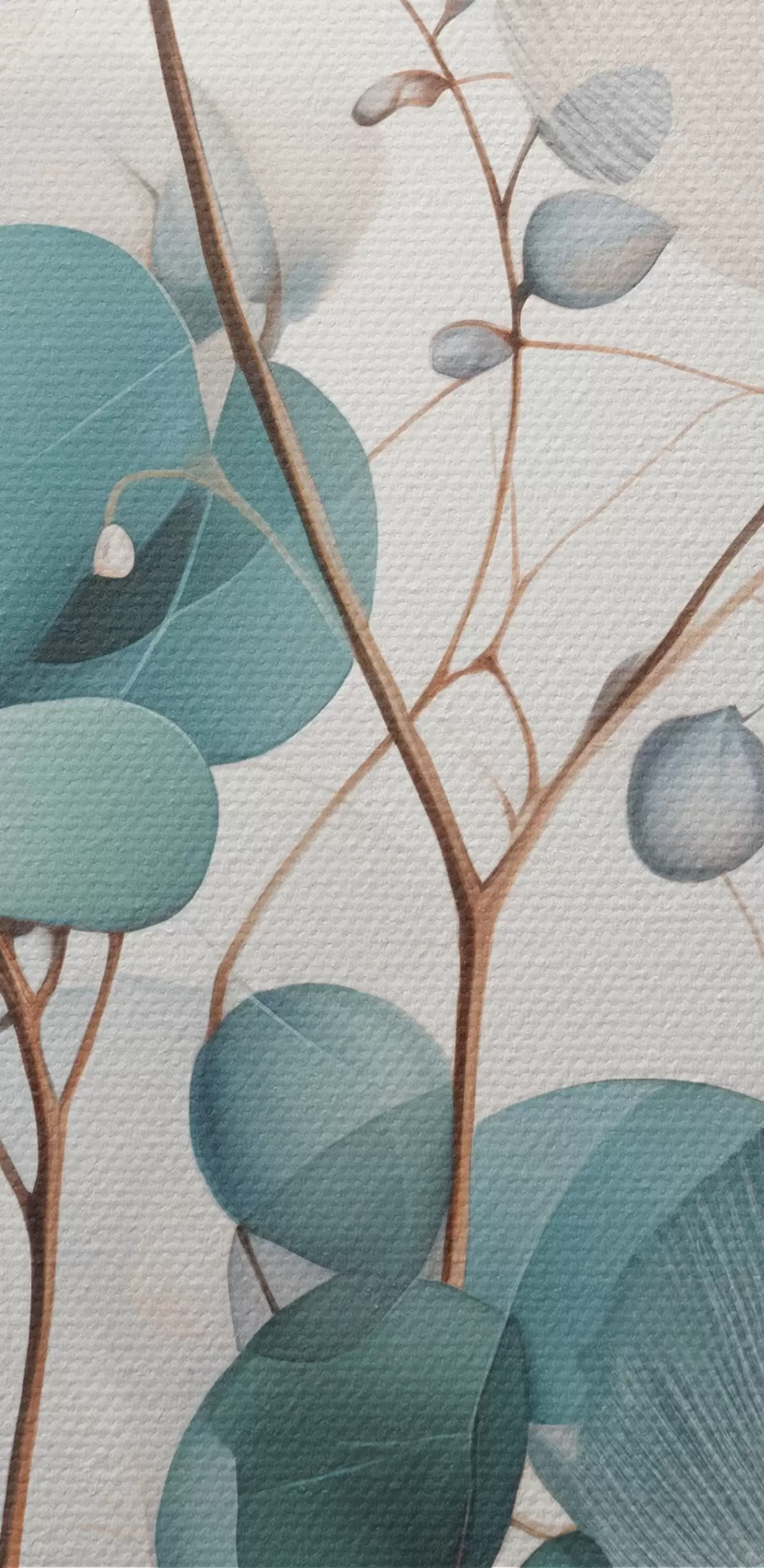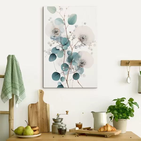 Cuadros Flores abstractas de eucalipto con pétalos blancos y hojas verdes apagadas en las ramas Nr s45946