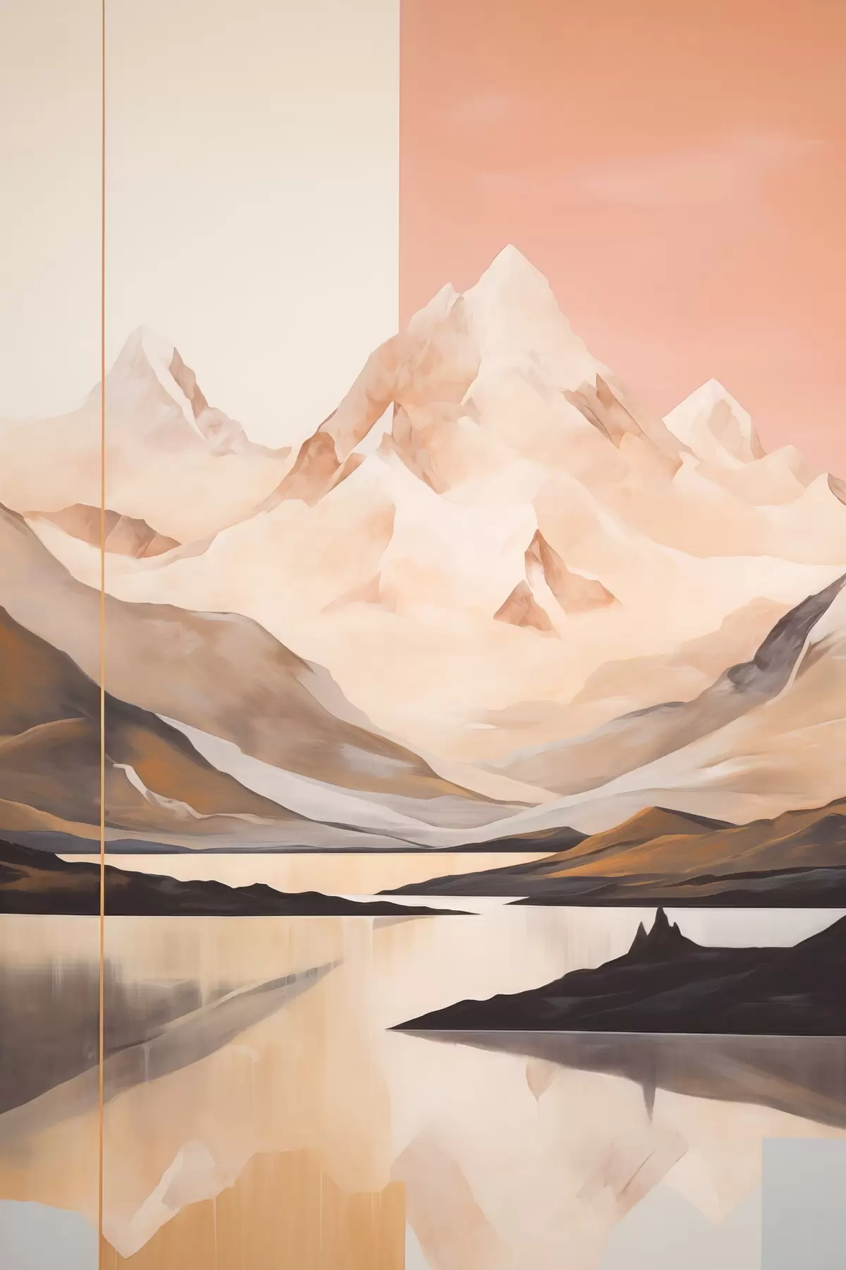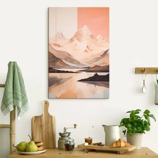Cuadros Paisaje abstracto con montañas y un lago, colores pastel, estilo minimalista Nr s45949