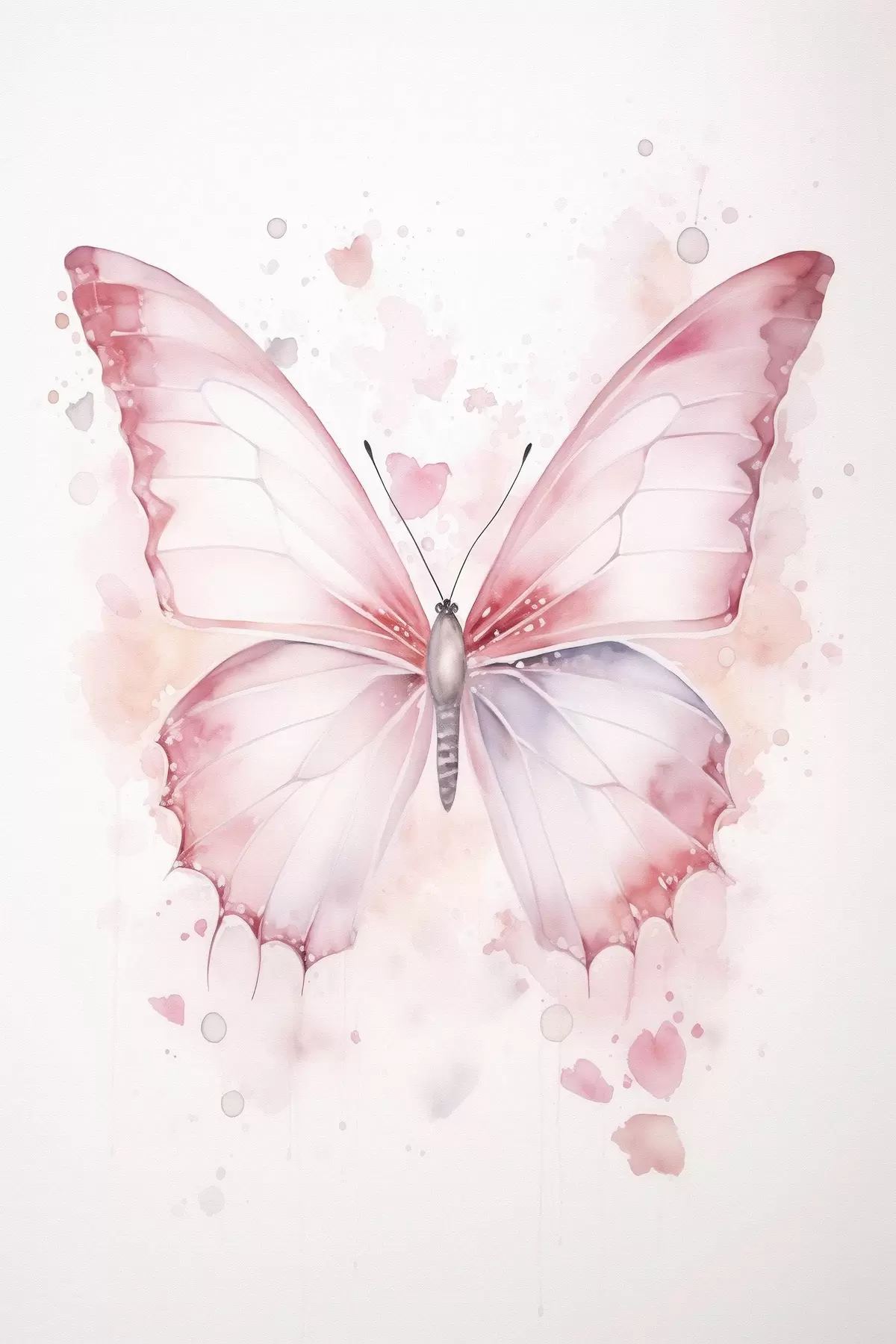 murales de pared Mariposa rosa, técnica de acuarela s46073