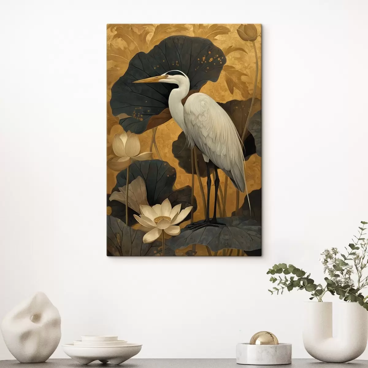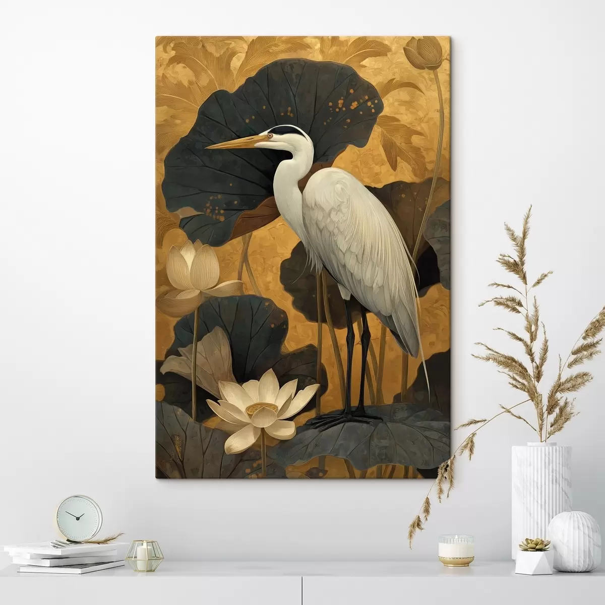 Cuadros Garza entre lotos sobre un fondo cálido Nr s46148