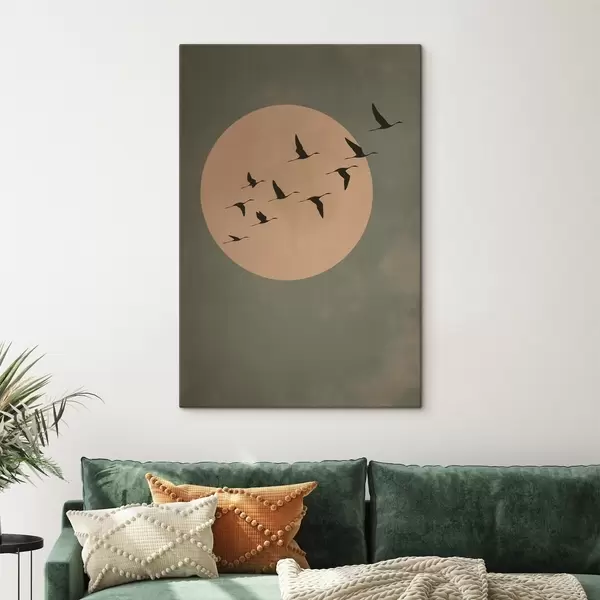 Cuadros Una bandada de pájaros volando contra una gran luna cálida Nr s46162