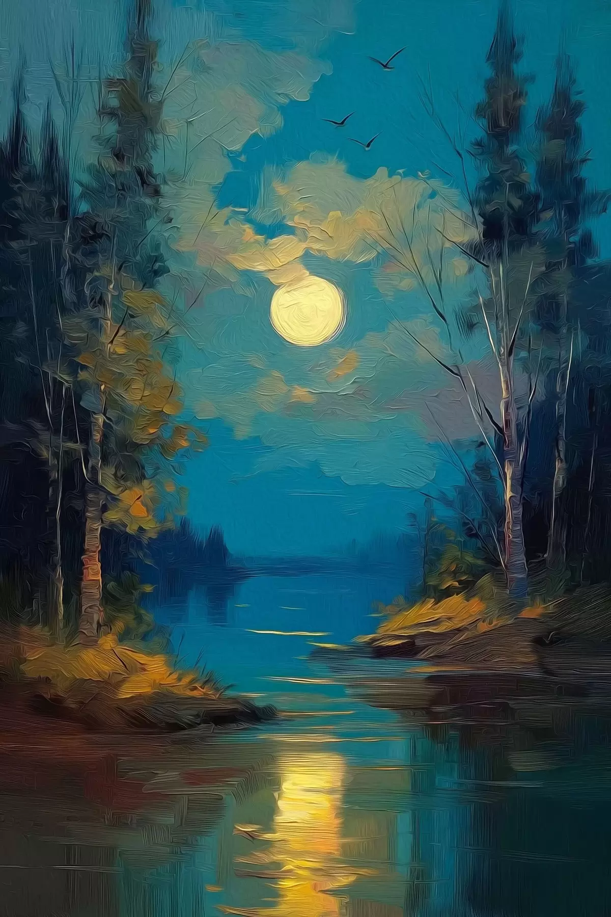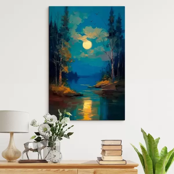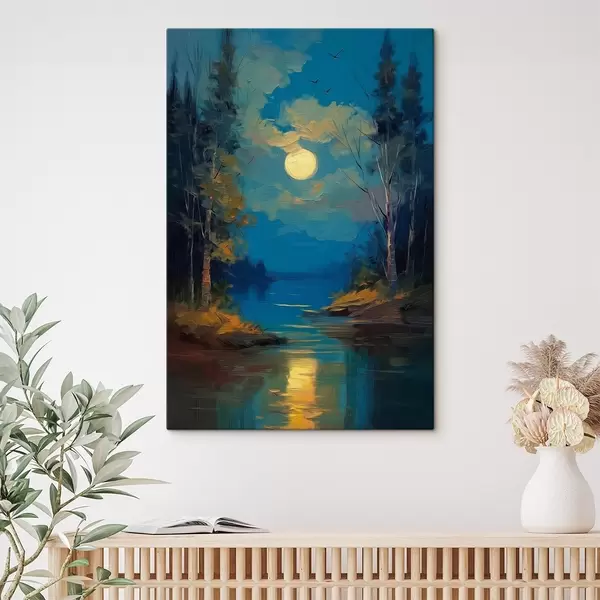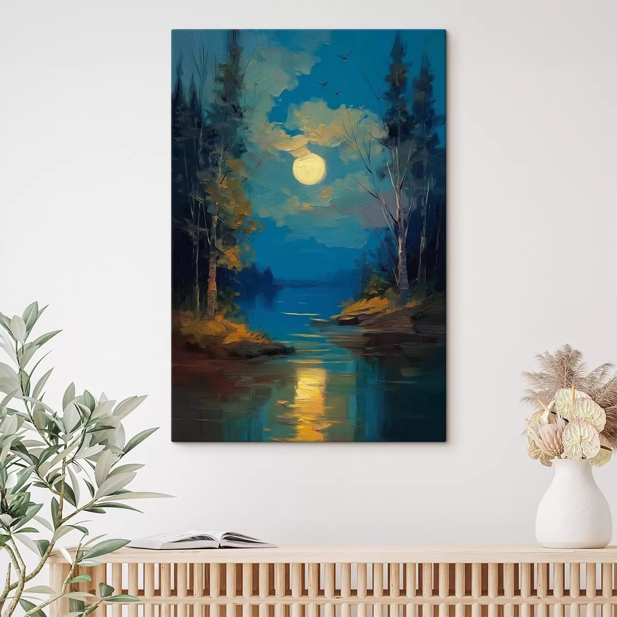 Cuadros Luz de luna sobre un río tranquilo entre pinos Nr s46164