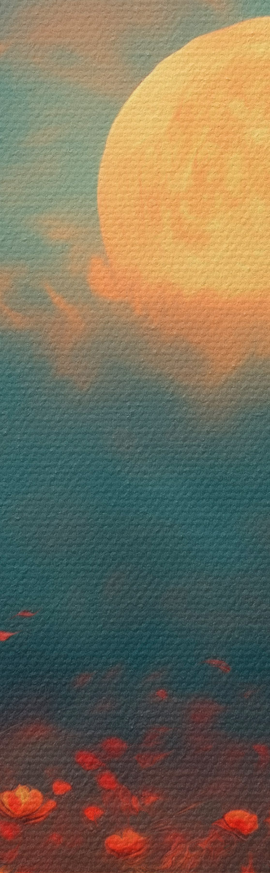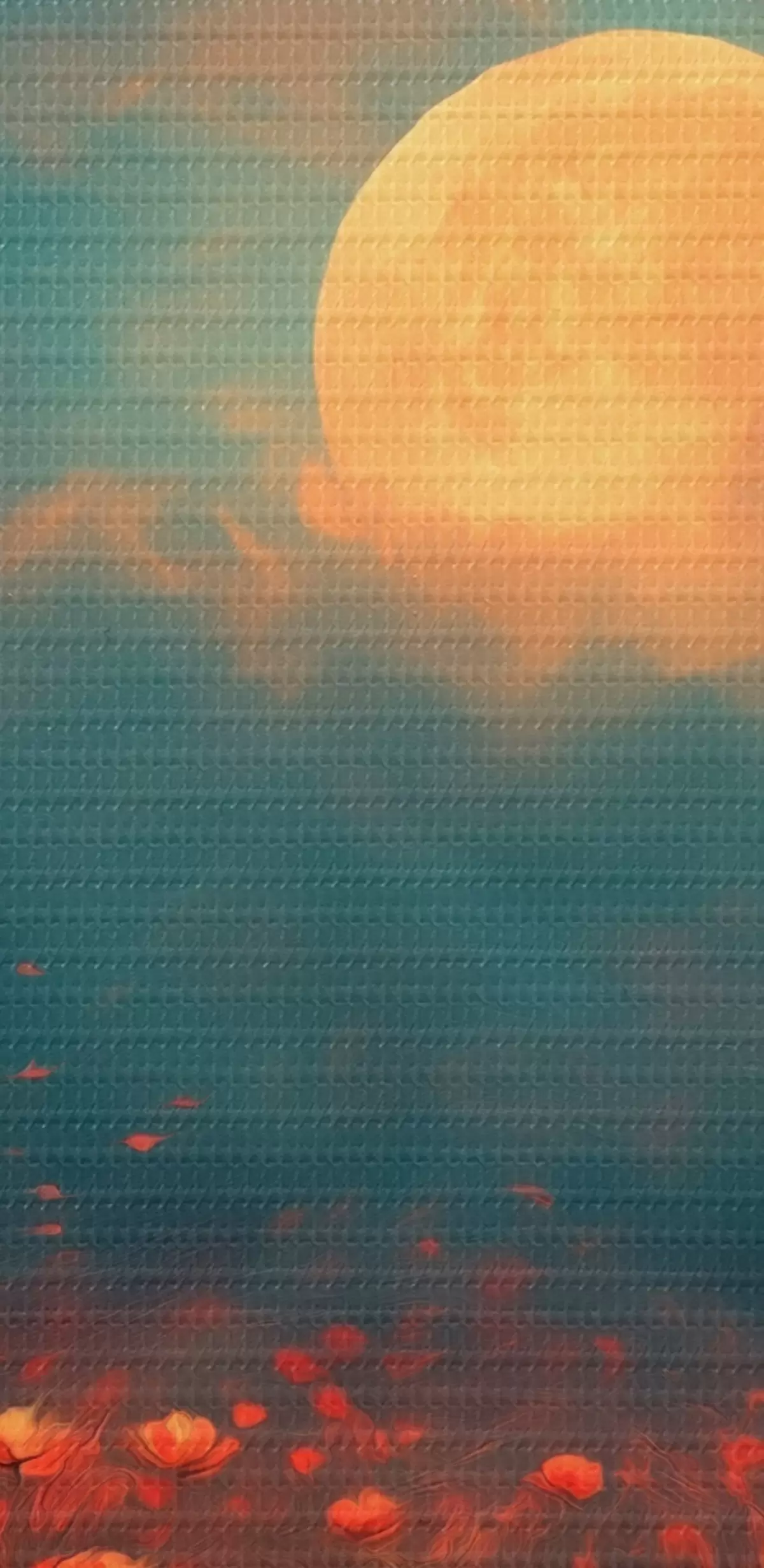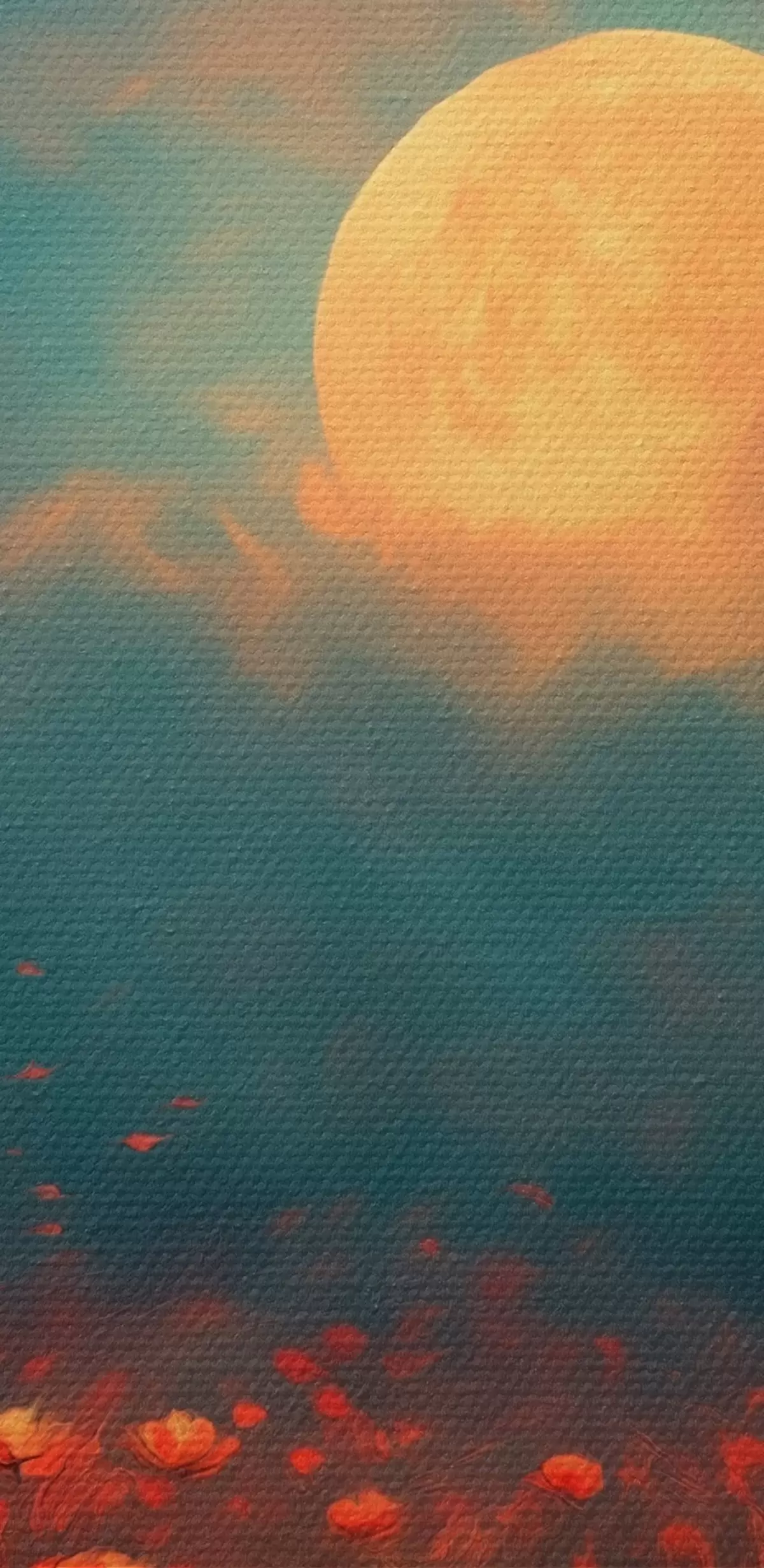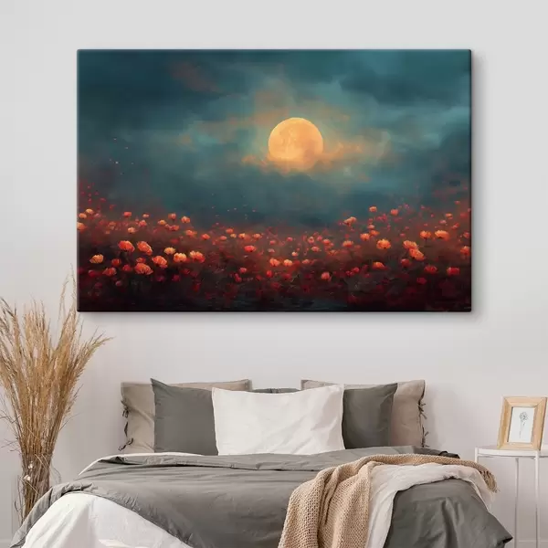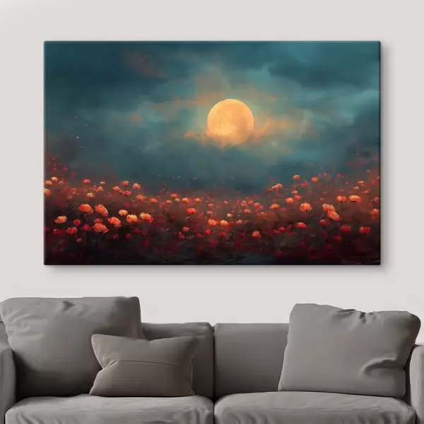 Cuadros Luna sobre un campo de flores rojas en un cielo brumoso al atardecer Nr s46167