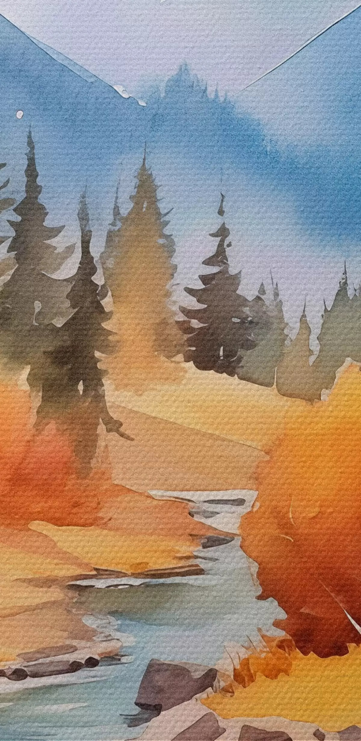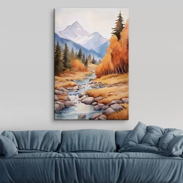 Cuadros Paisaje montañoso otoñal con un río y un bosque lleno de vida Nr s46187