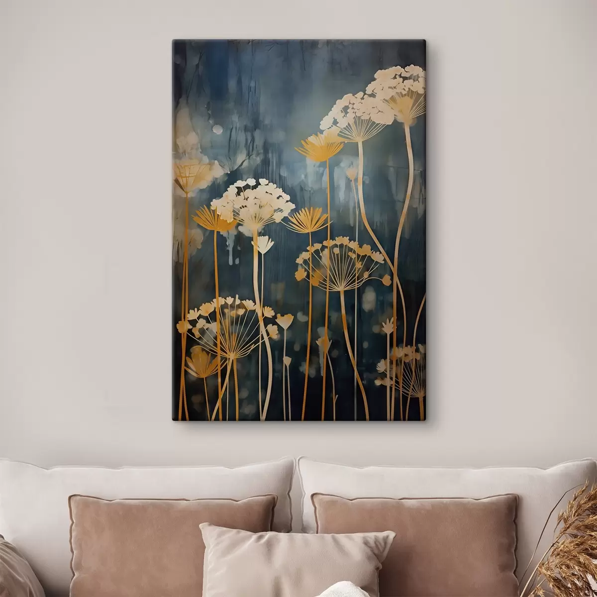 Cuadros Flores estilizadas con tallos finos sobre fondo oscuro Nr s46188