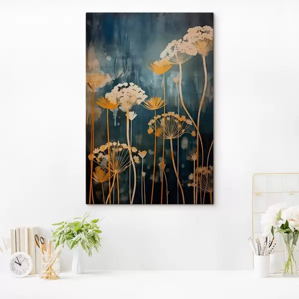 Cuadros Flores estilizadas con tallos finos sobre fondo oscuro Nr s46188