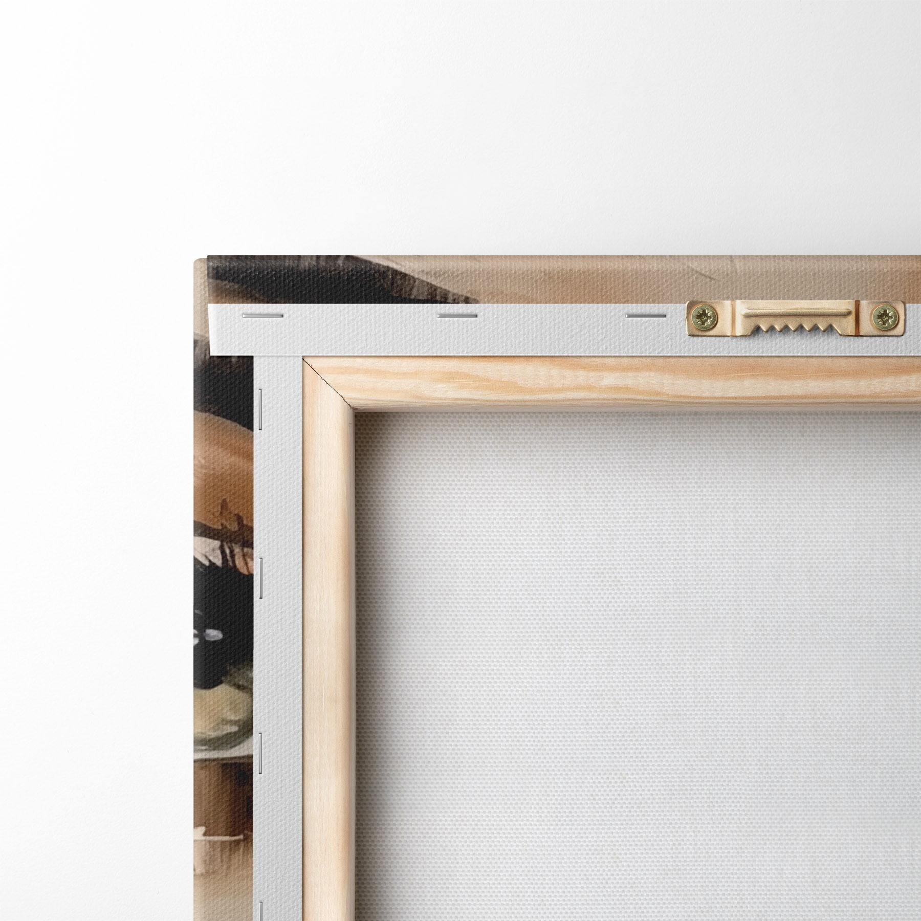 Vendemos cuadros en bastidor: se trata de un marco de madera sobre el que se extiende el lienzo. Este cuadro no necesita marco; puedes colgarlo directamente en la pared.