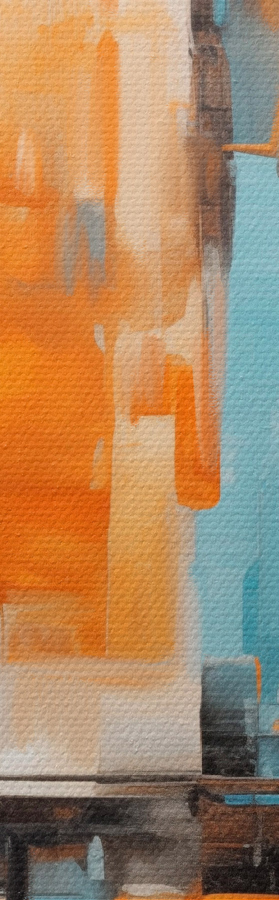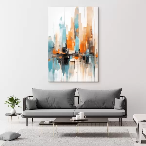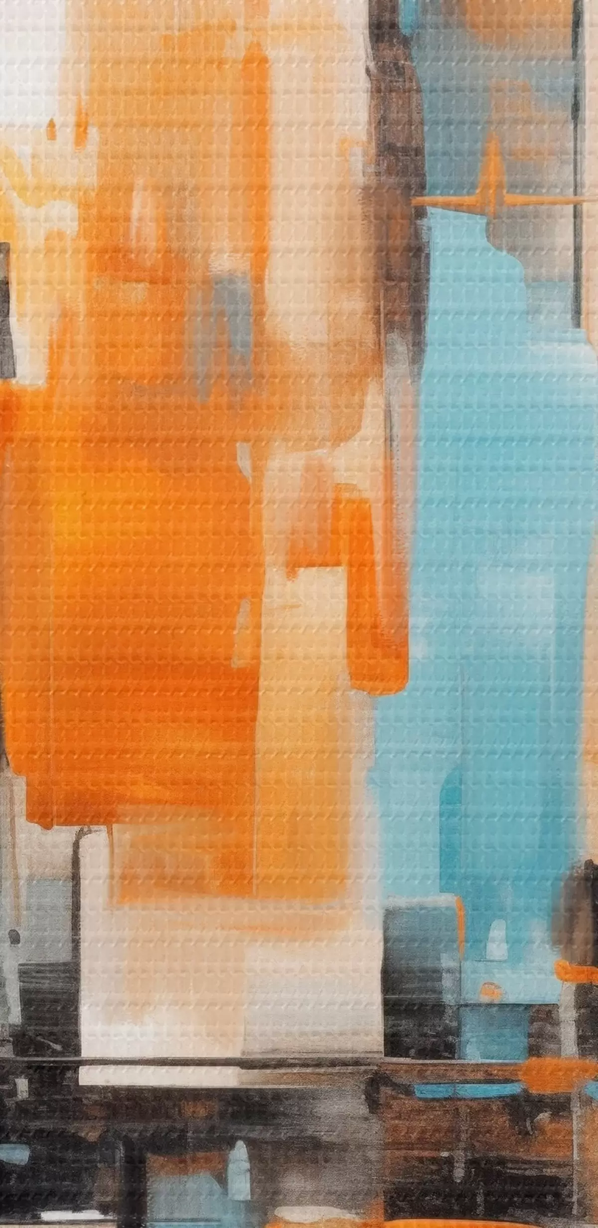 Cuadros Paisaje urbano abstracto con pinceladas verticales en tonos naranjas, azules y blancos, estilo pictórico Nr s46267