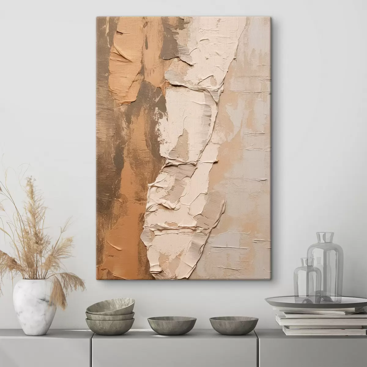 murales de pared Pintura abstracta con pinceladas gruesas, tonos beige y marrones, superficie texturizada, paleta de colores neutros. s46272