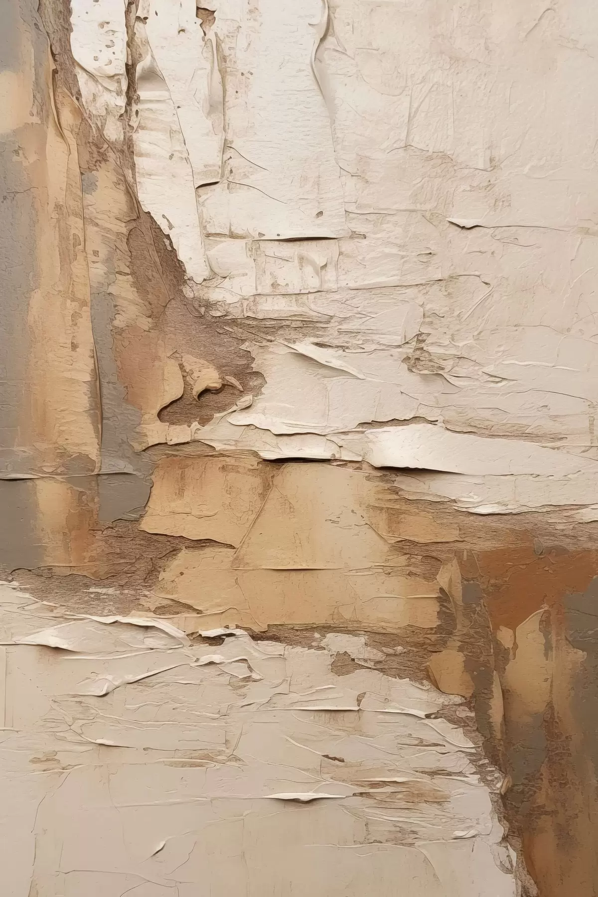 murales de pared Pintura abstracta con pinceladas gruesas, tonos beige y marrones, superficie texturizada, paleta de colores neutros. s46273