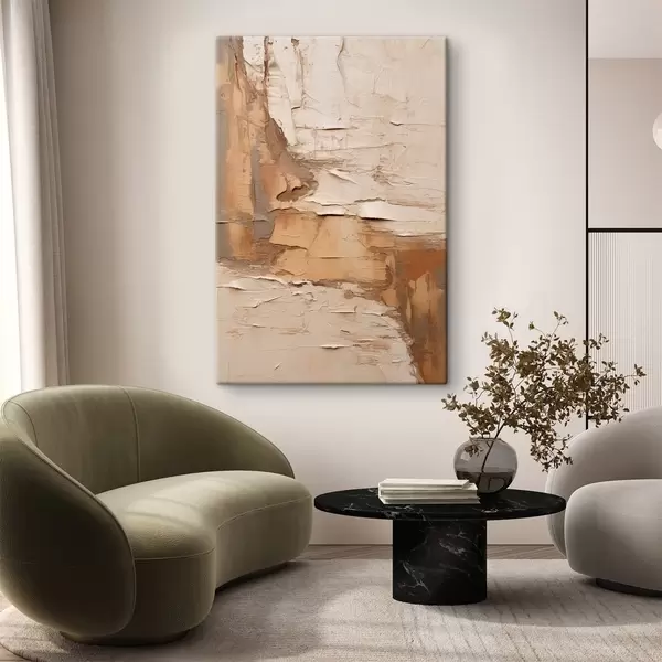 Cuadros Pintura abstracta con pinceladas gruesas, tonos beige y marrones, superficie texturizada, paleta de colores neutros. Nr s46273