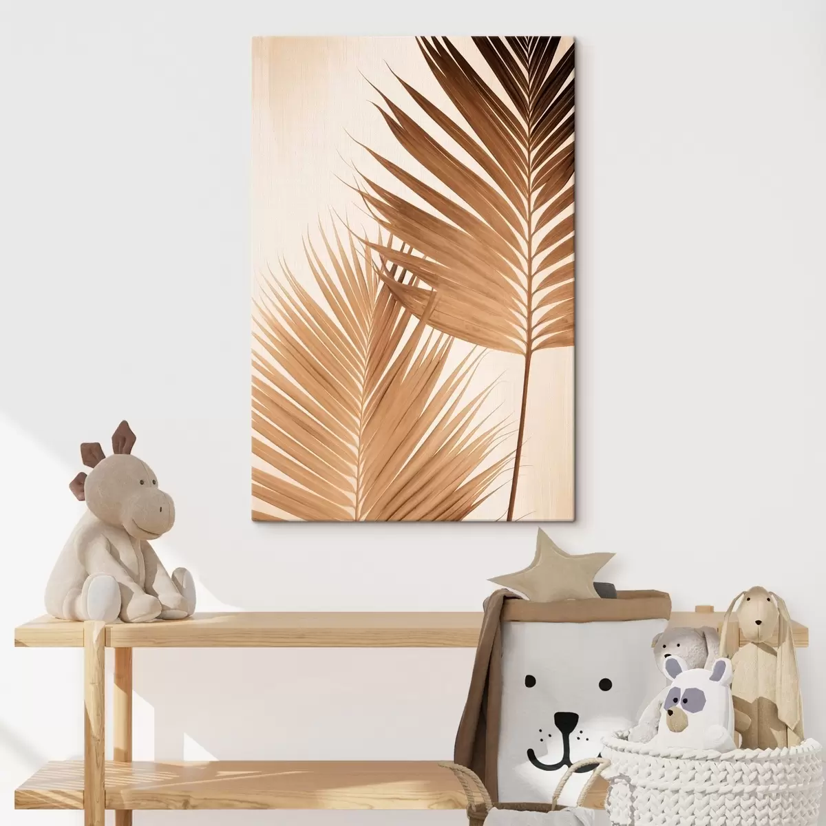 Cuadros Hojas de palmera en tonos marrones, fondo neutro, estilo minimalista, iluminación natural, ambiente tropical. Nr s46274
