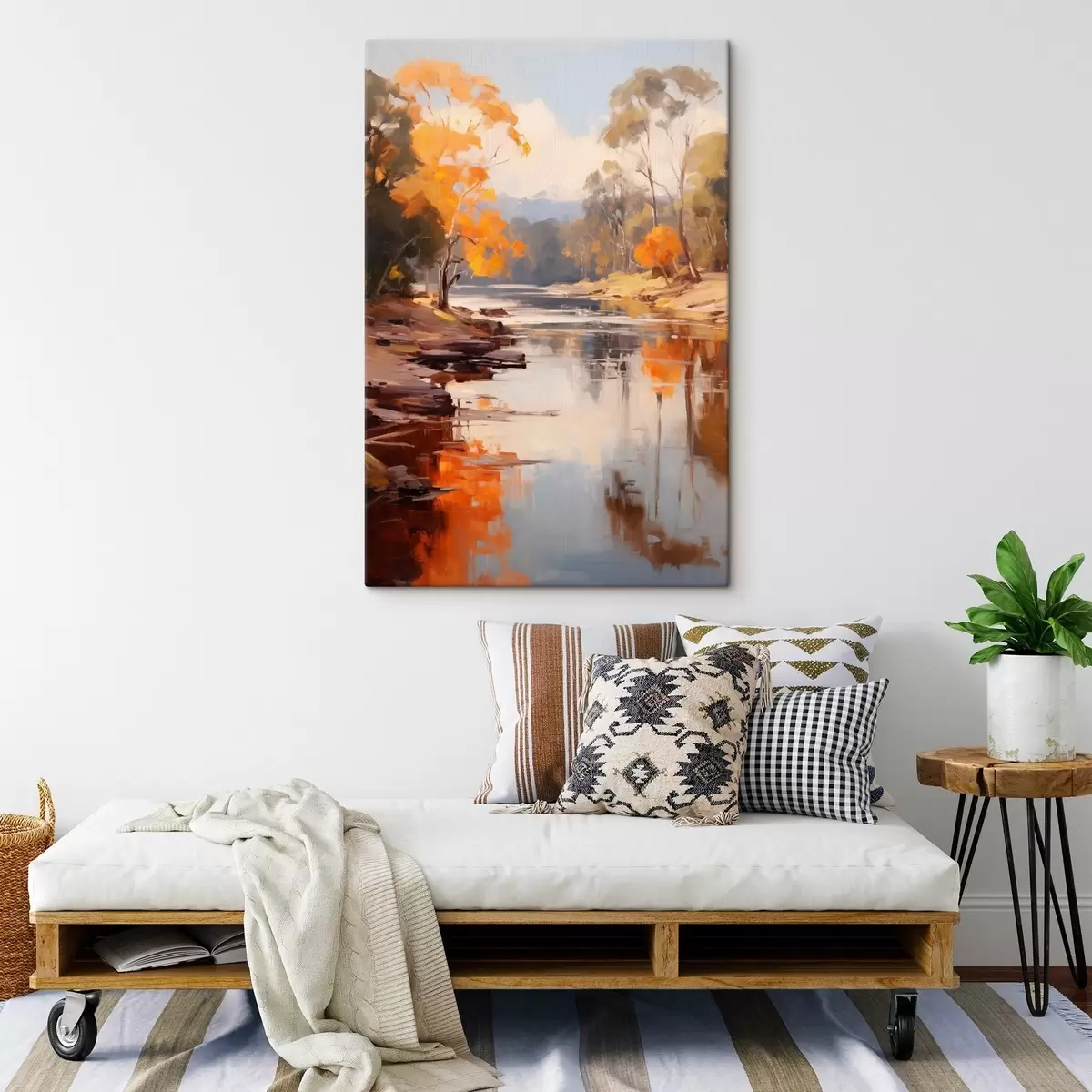 Cuadros Paisaje otoñal, río con árboles en la orilla, bosque al fondo, reflejos en el agua Nr s46280