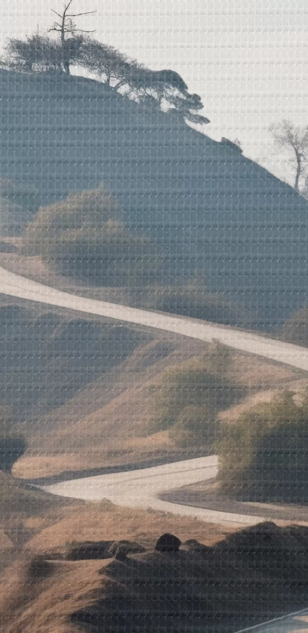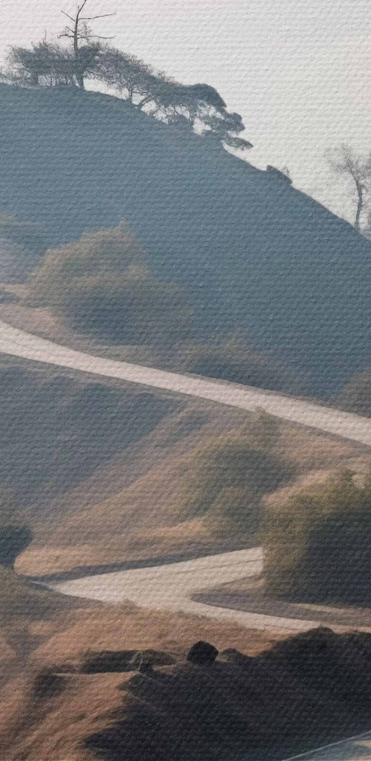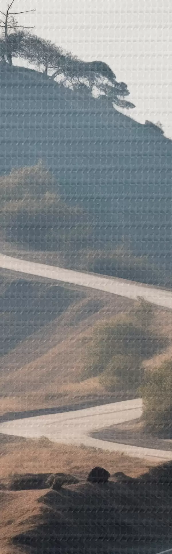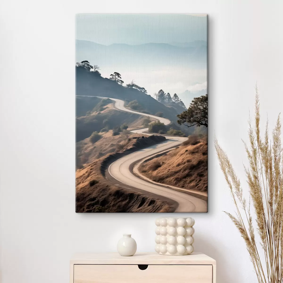Cuadros Una sinuosa carretera que atraviesa un paisaje montañoso con hierba seca bajo un cielo despejado y montañas en la distancia. Nr s46289