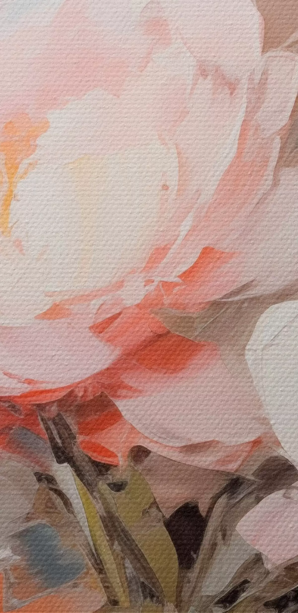 Cuadros Un ramo de peonías rosas y blancas en un jarrón de cristal, pinceladas suaves, colores pastel, fondo neutro. Nr s46295