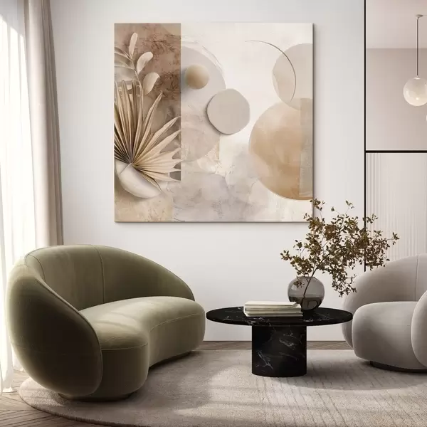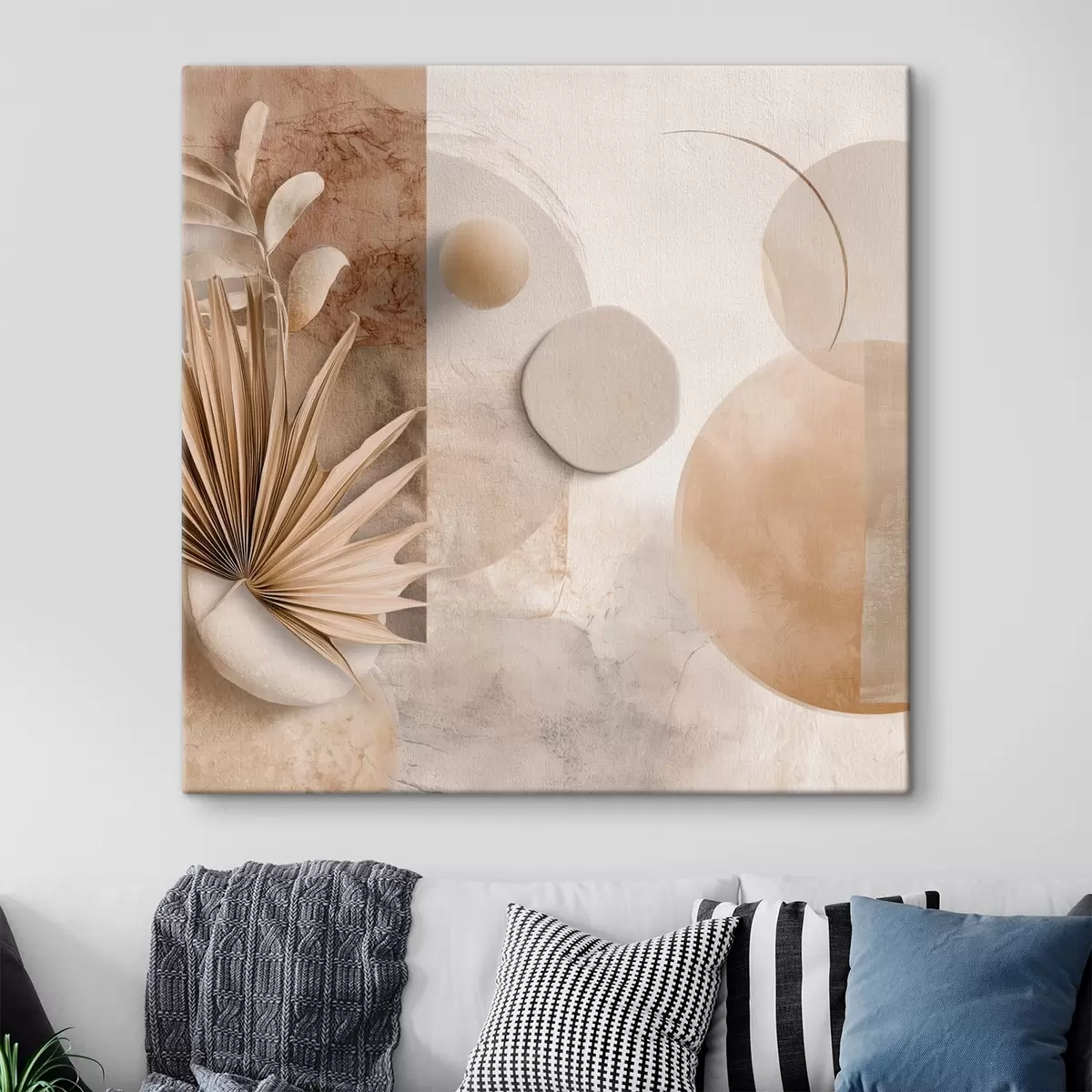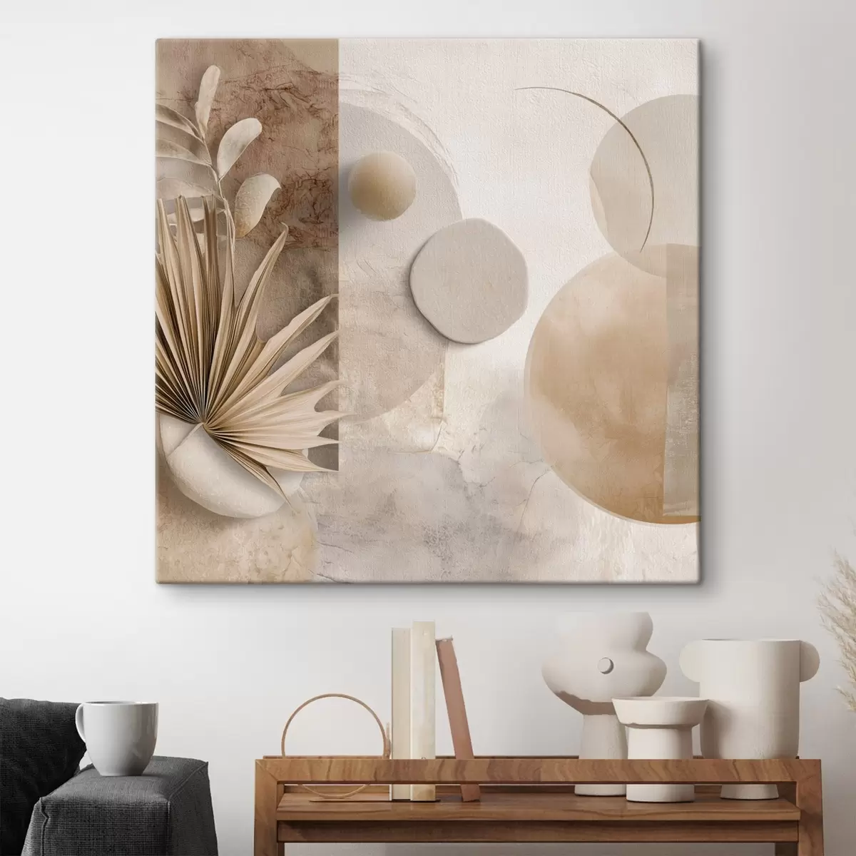 Cuadros Hojas de palmera secas y círculos 3D en tonos beige Nr s46310