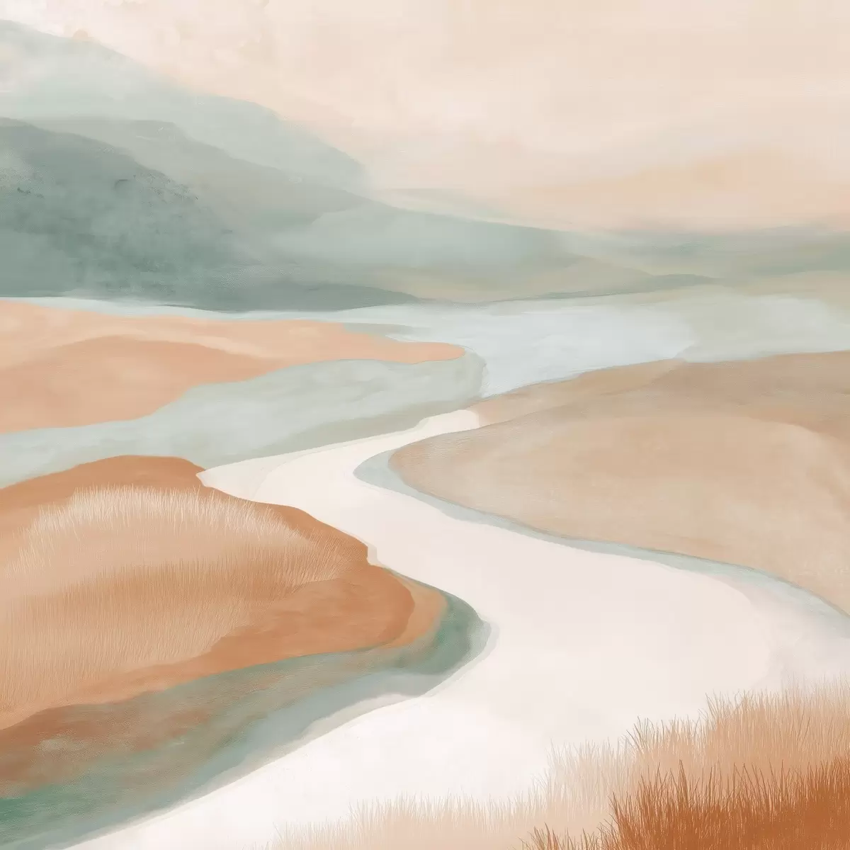 Cuadros Paisaje abstracto con un río en naranja y verde Nr s46316