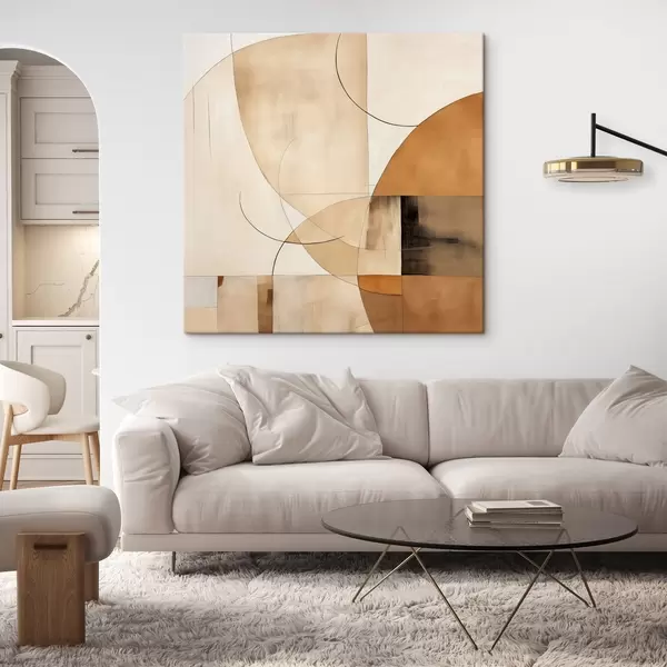 Cuadros Abstracción geométrica con líneas curvas y tonos beige Nr s46320