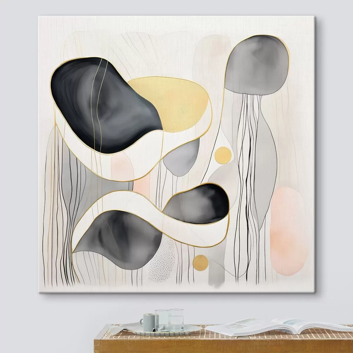 Vendemos cuadros en bastidor: se trata de un marco de madera sobre el que se extiende el lienzo. Este cuadro no necesita marco; puedes colgarlo directamente en la pared.