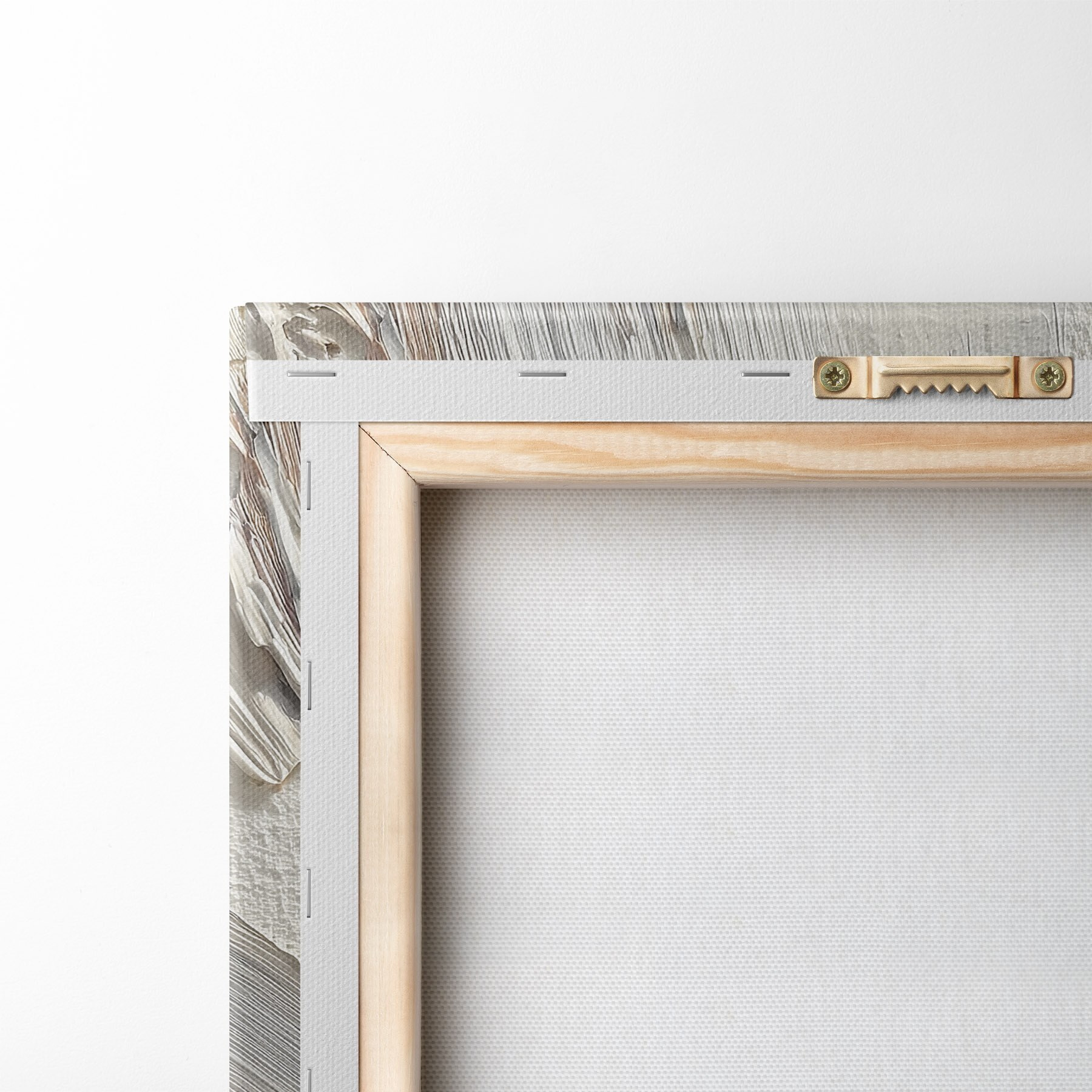 Vendemos cuadros en bastidor: se trata de un marco de madera sobre el que se extiende el lienzo. Este cuadro no necesita marco; puedes colgarlo directamente en la pared.