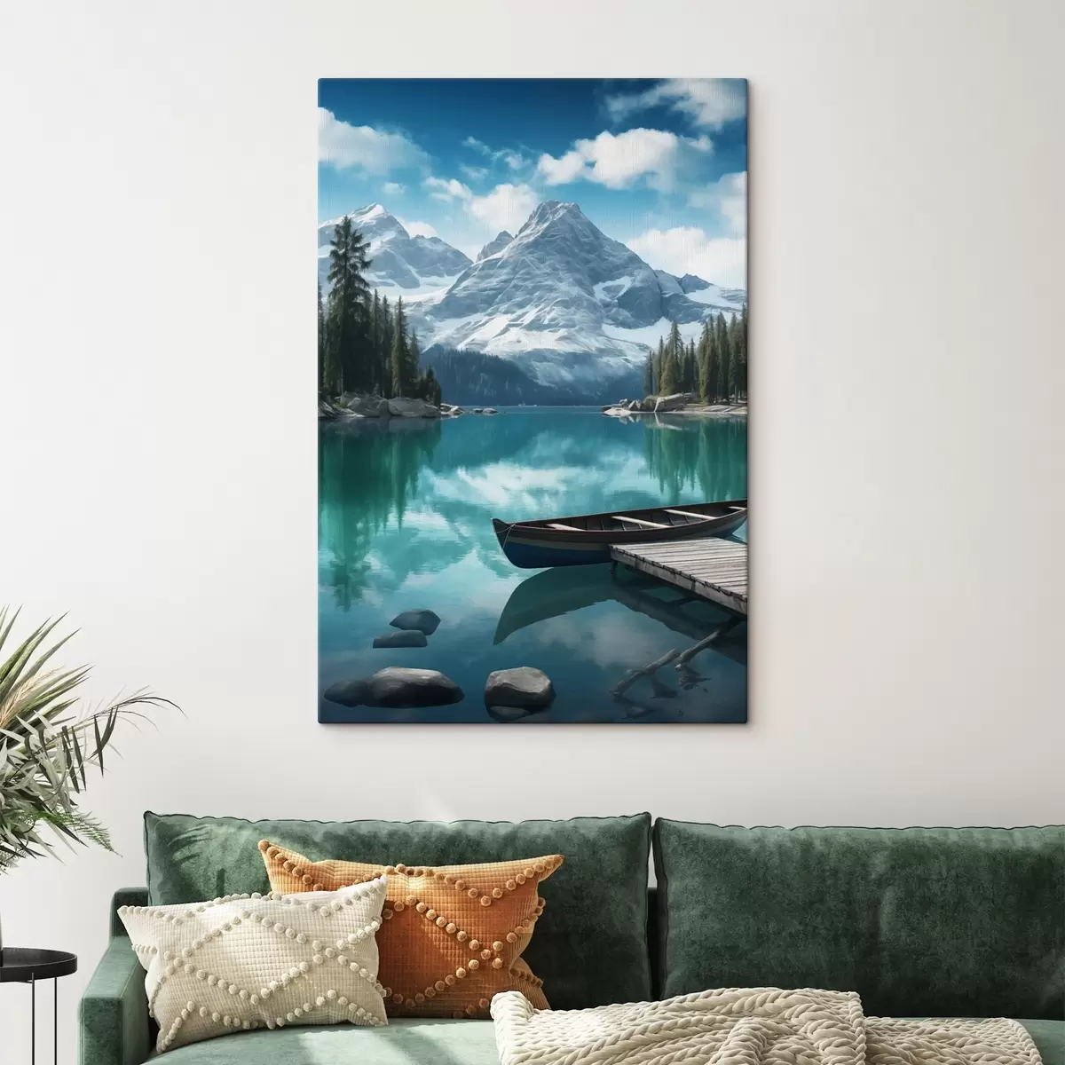 Cuadros Lago alpino con canoa y picos nevados Nr s46481