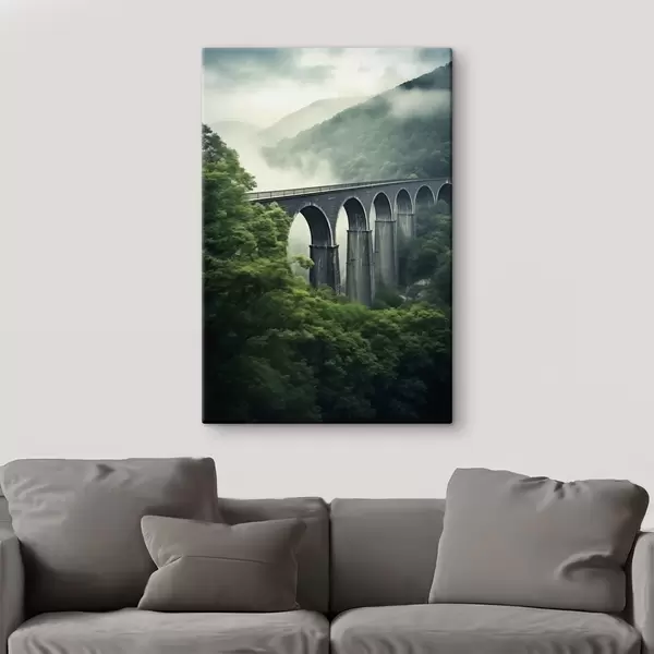 Cuadros Viaducto de piedra sobre un valle boscoso y brumoso Nr s46483