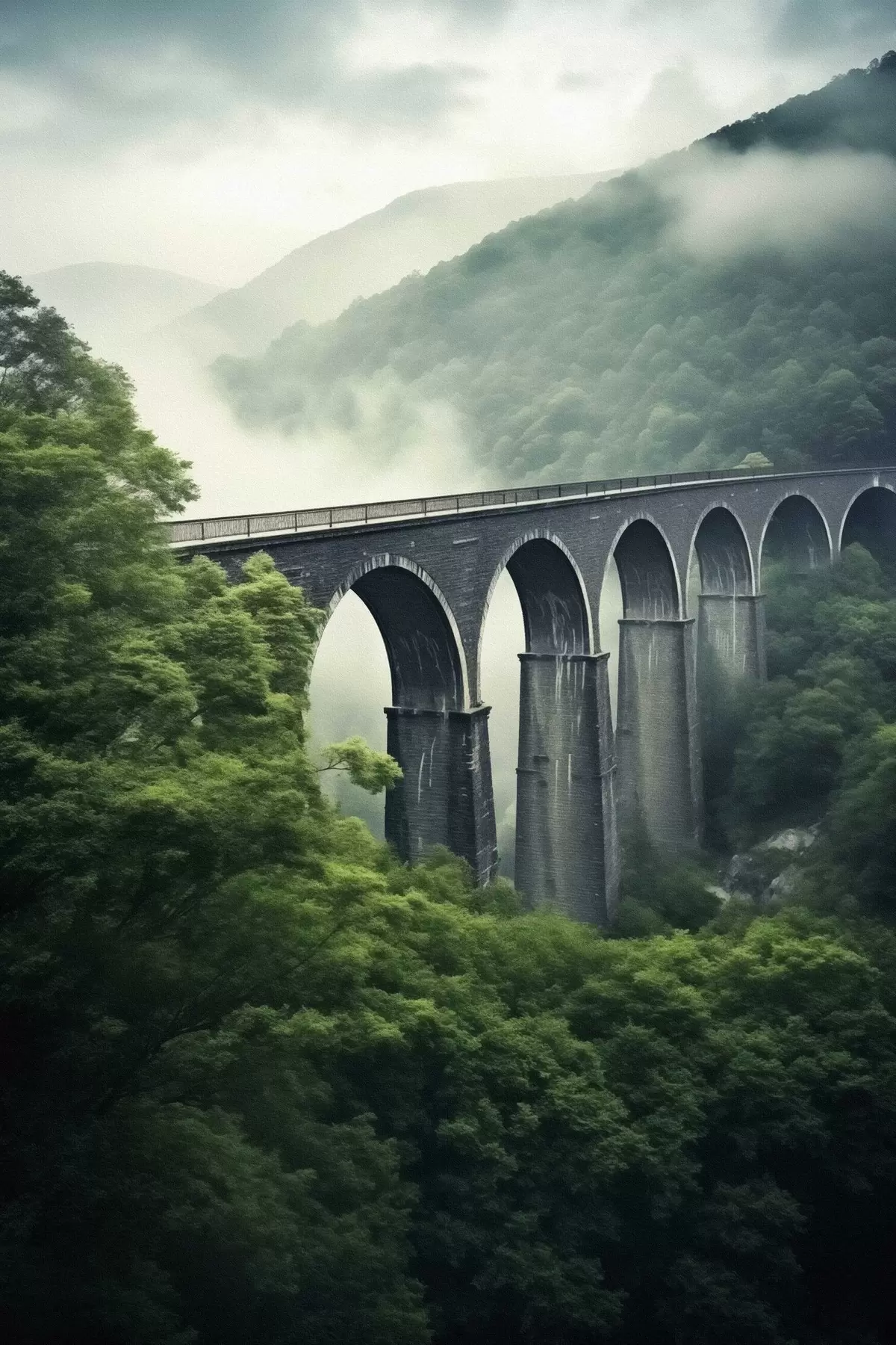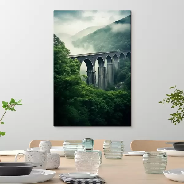 Cuadros Viaducto de piedra sobre un valle boscoso y brumoso Nr s46483