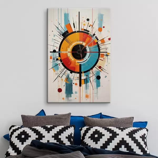 murales de pared Explosión radial en verde azulado, naranja y negro. s46485