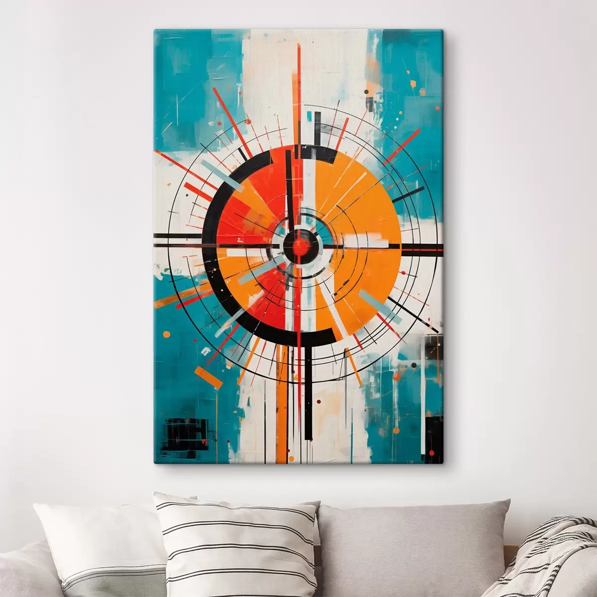 Cuadros Blanco concéntrico con segmentos verde azulado y naranja. Nr s46486