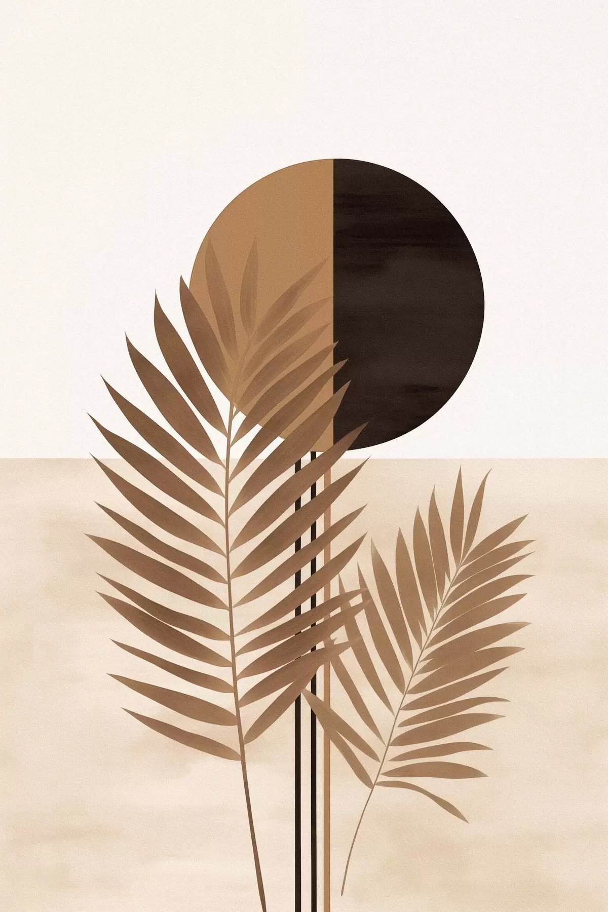 Cuadros Dos hojas de palmera con motivo de sol con círculo dividido Nr s46491