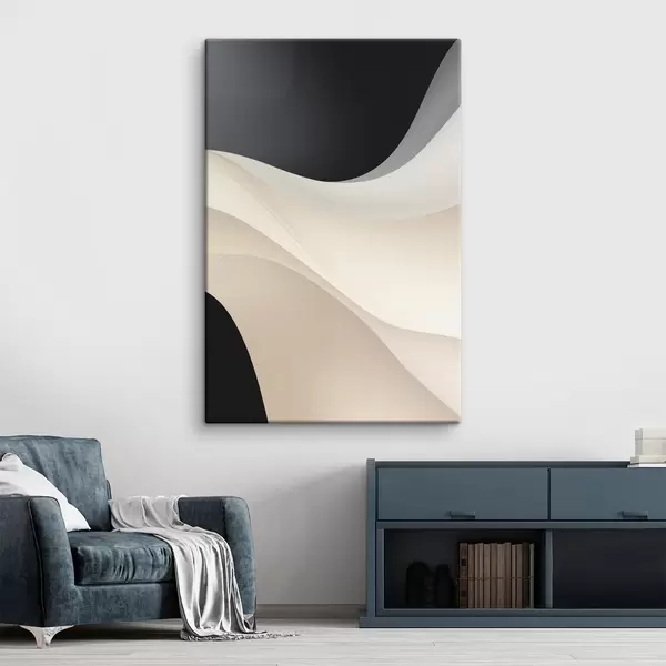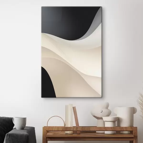 Cuadros Curvas fluidas en capas en negro, crema y gris pardo. Nr s46492