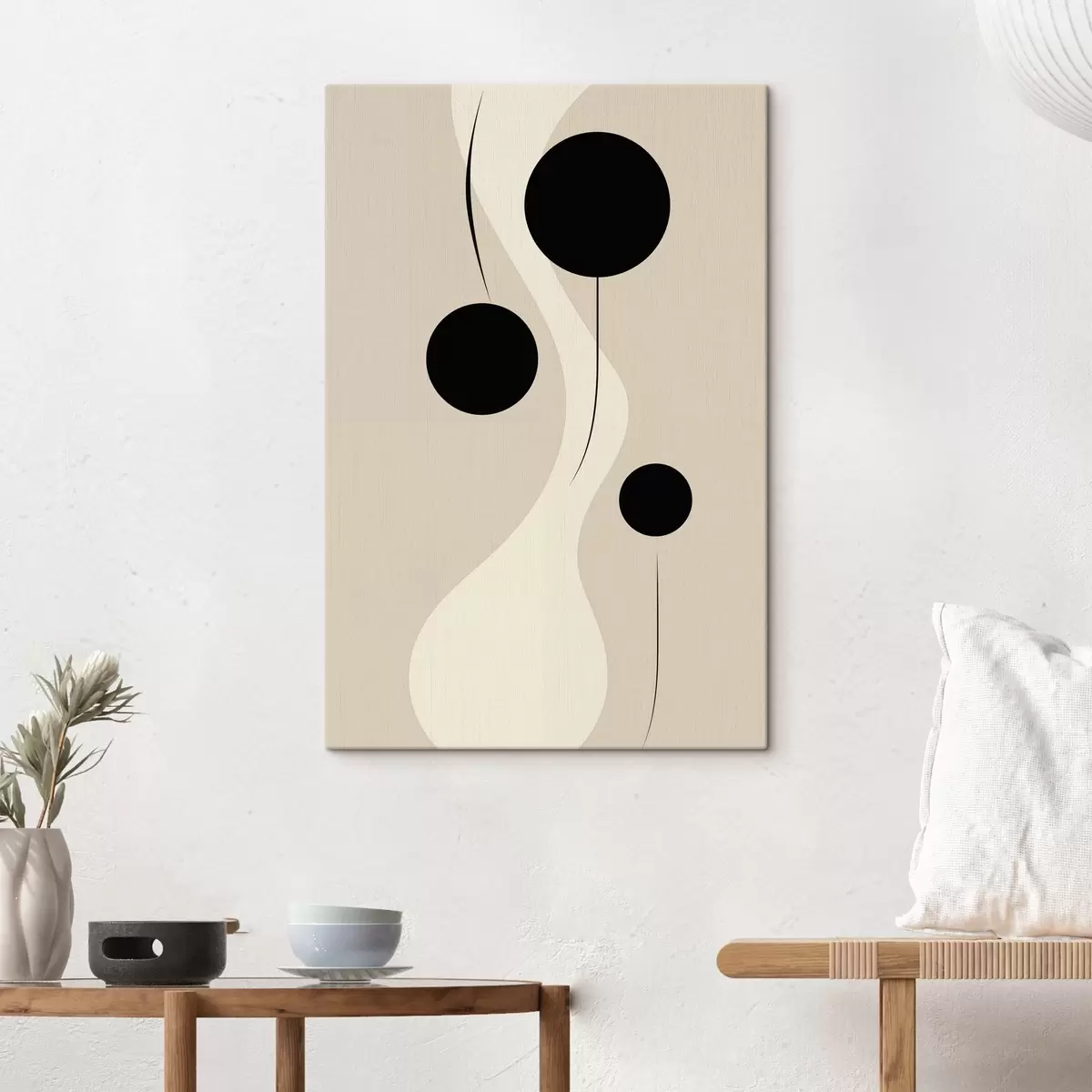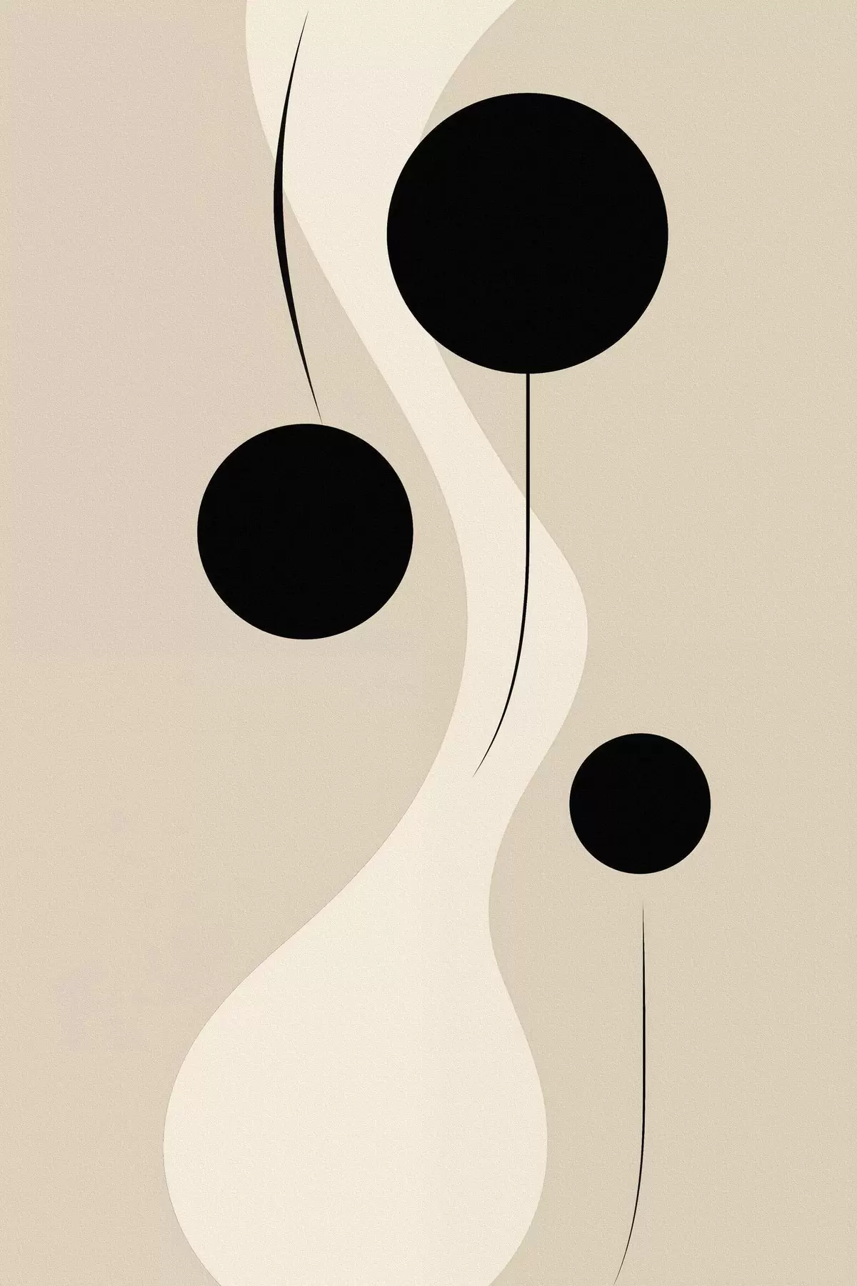 Cuadros Círculos mínimos sobre fondo beige con acentos de líneas fluidas. Nr s46496