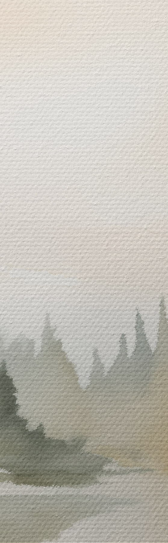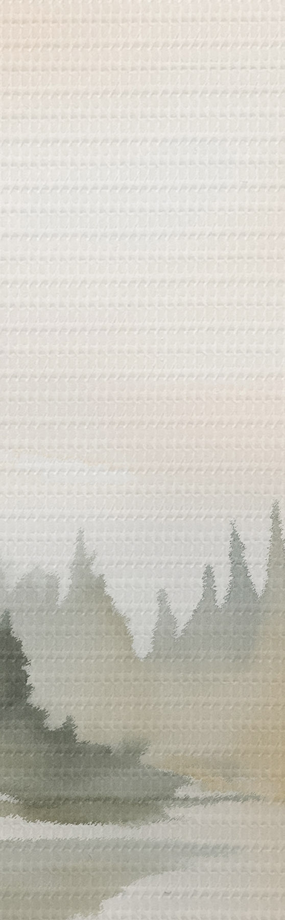 Cuadros Bosque brumoso de coníferas sobre un río tranquilo, estilo acuarela. Nr s46507
