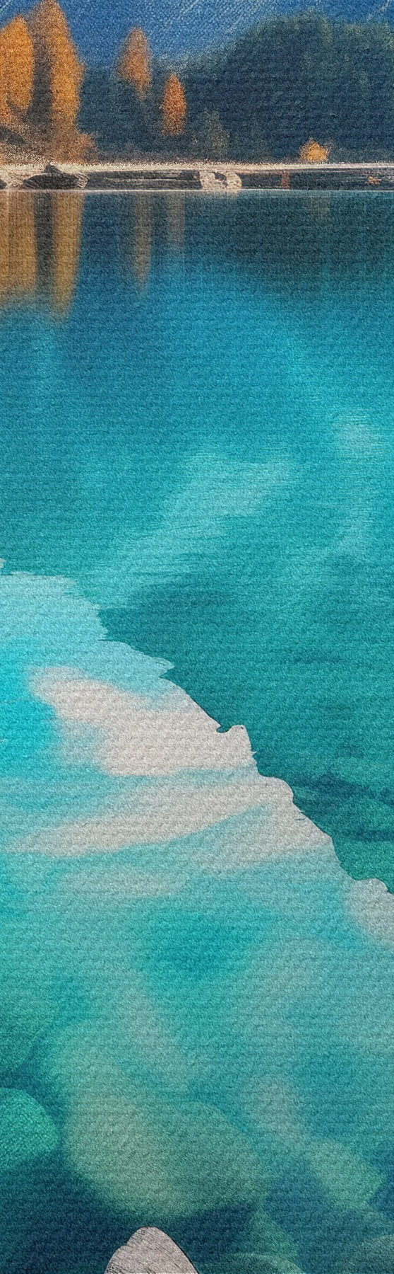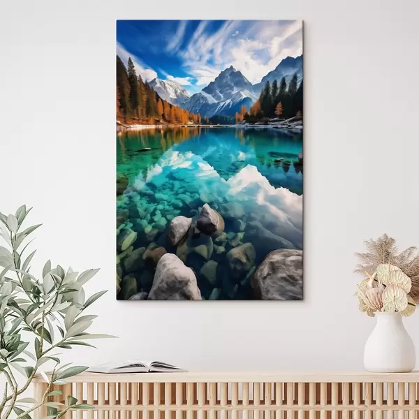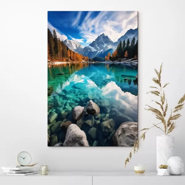 Cuadros Lago de montaña con aguas turquesas y alerces otoñales. Nr s46517