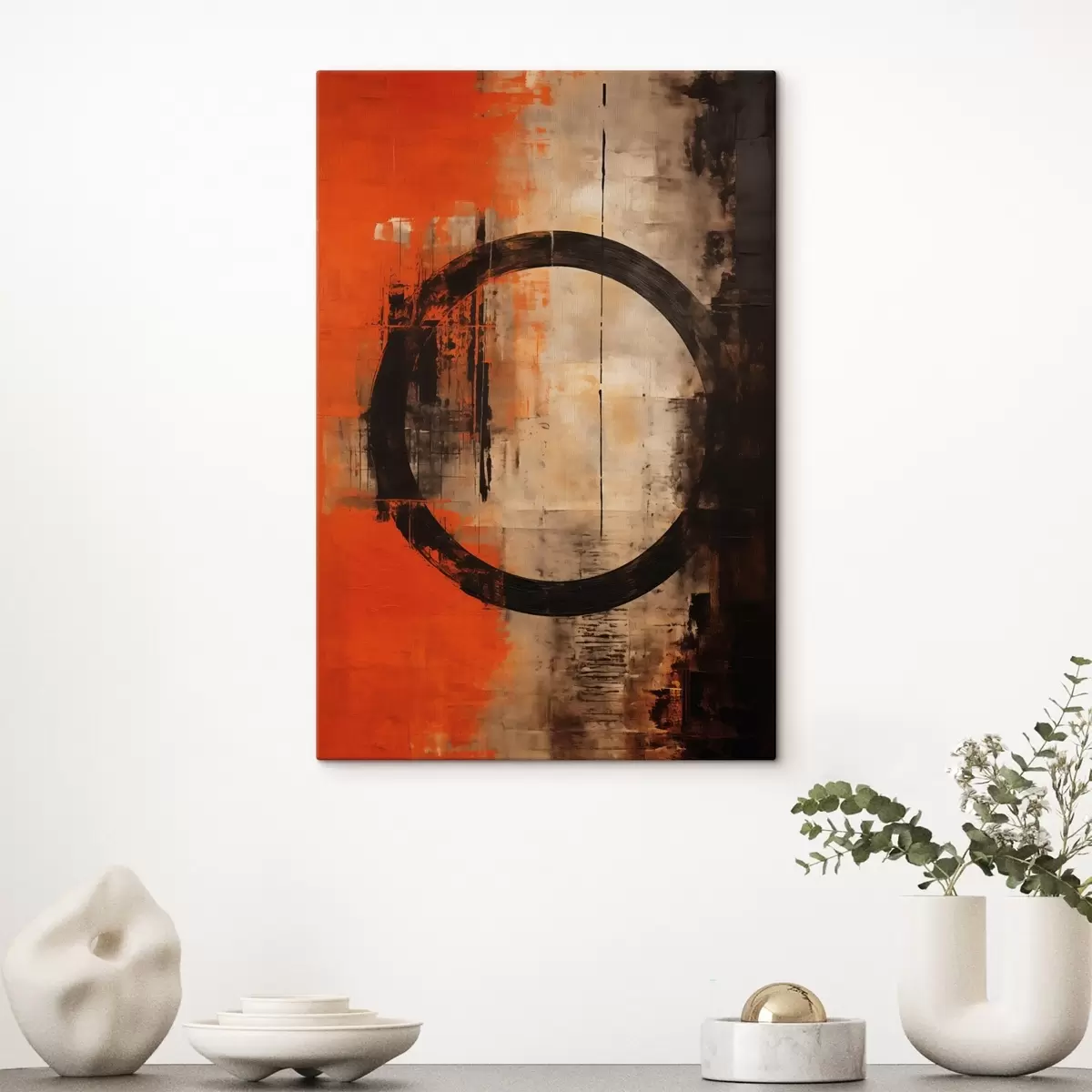 murales de pared Resumen con un gran círculo negro y texturas cálidas. s46528