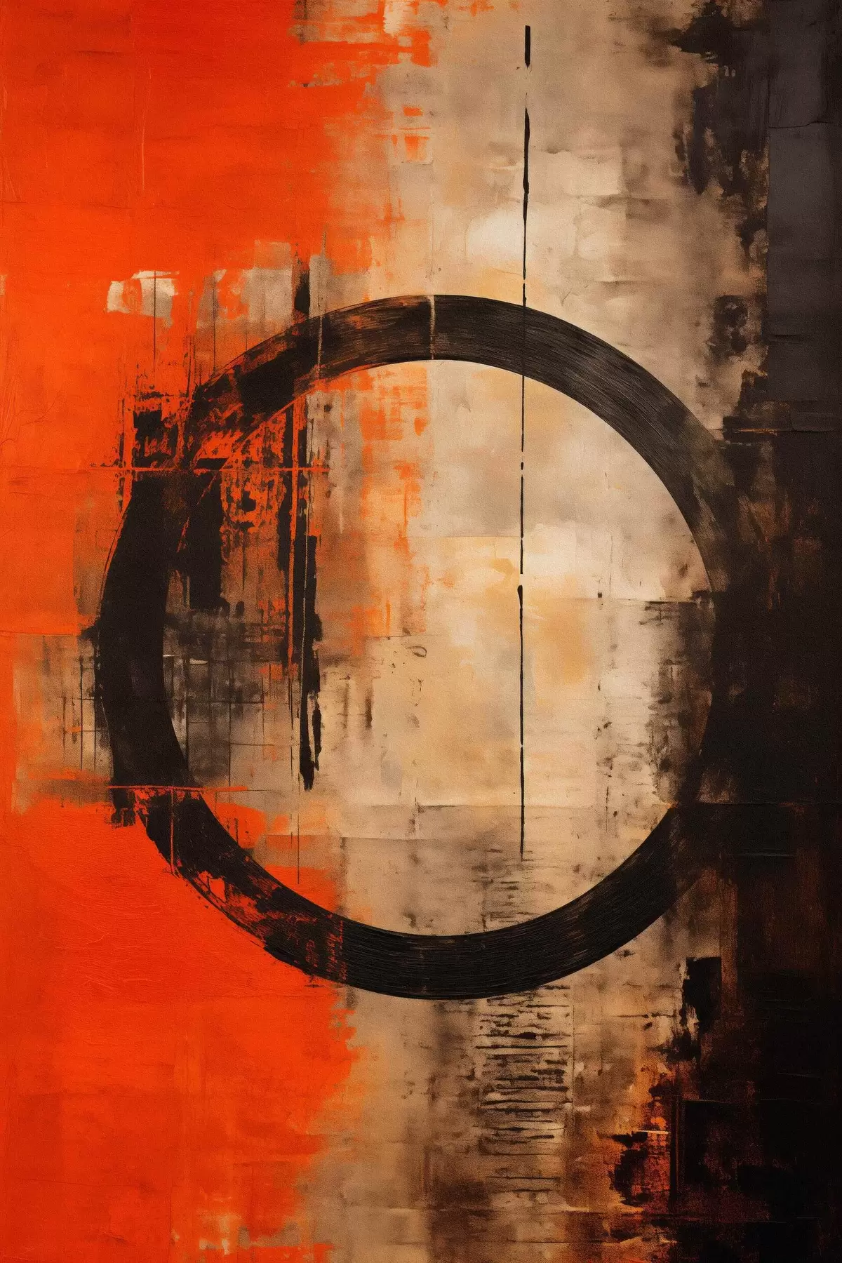 murales de pared Resumen con un gran círculo negro y texturas cálidas. s46528