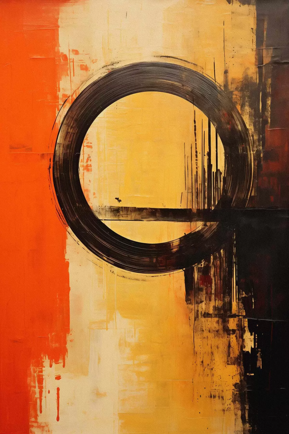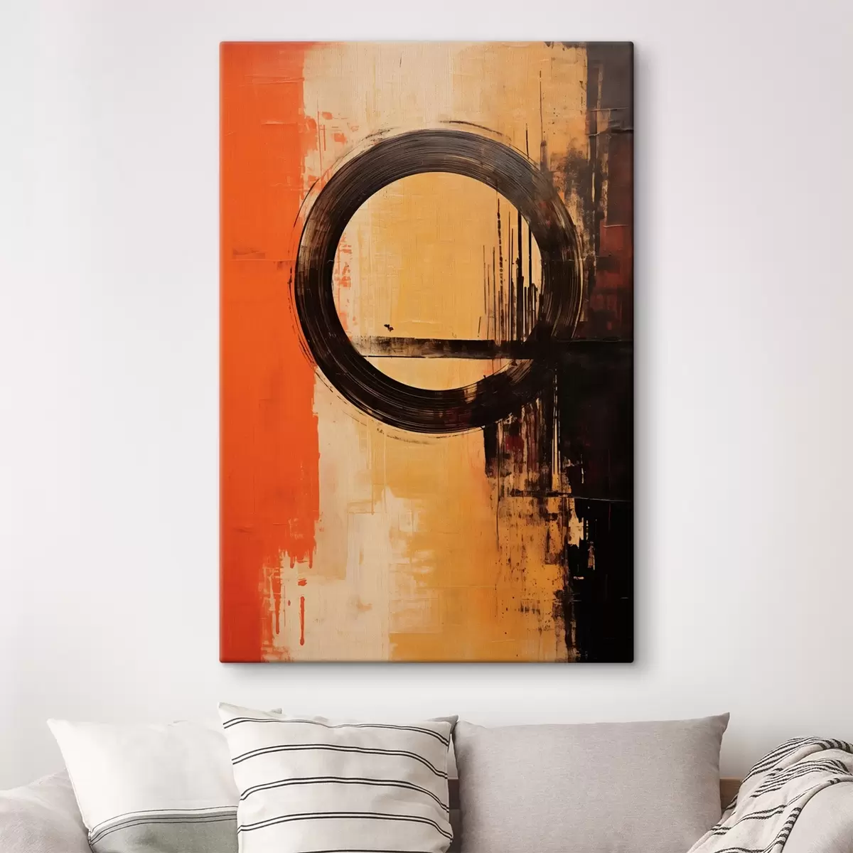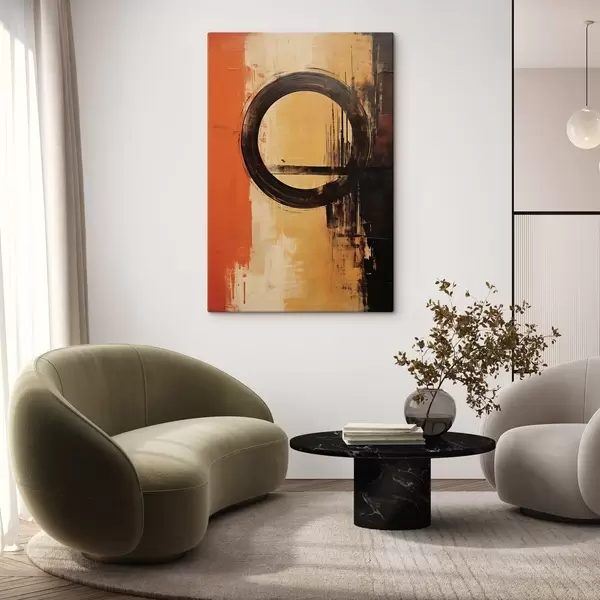 Cuadros Resumen con un anillo negro sobre fondo terracota-arena. Nr s46529