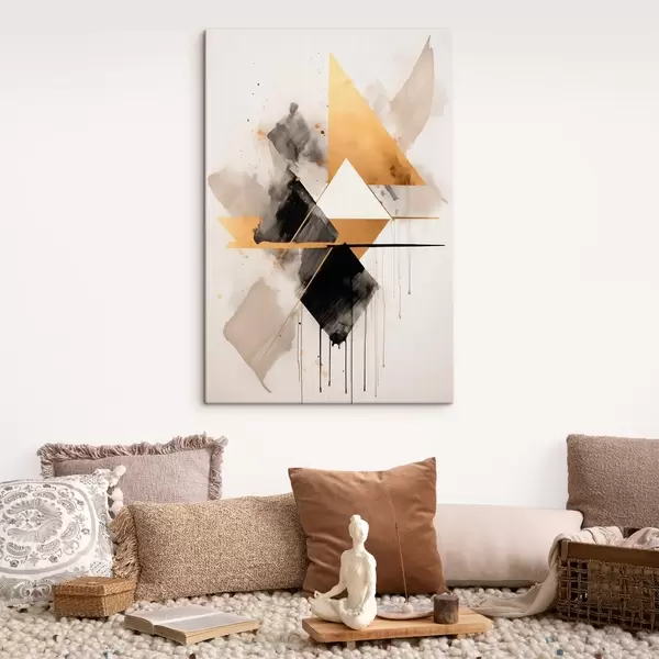 Cuadros Geometría con triángulos y un rombo negro, trazos beige. Nr s46539