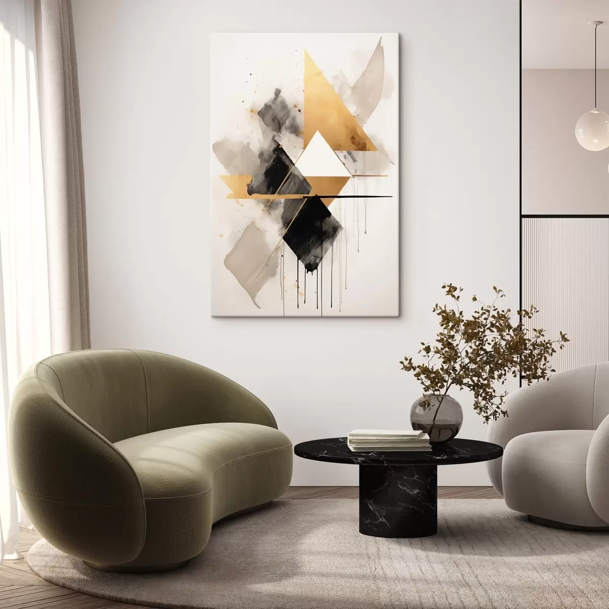 Cuadros Geometría con triángulos y un rombo negro, trazos beige. Nr s46539