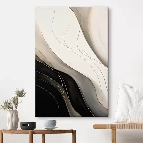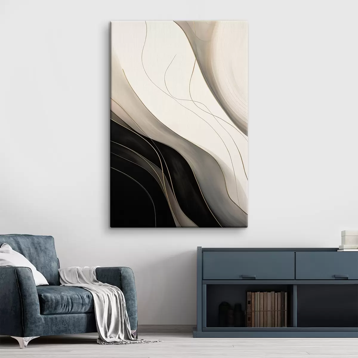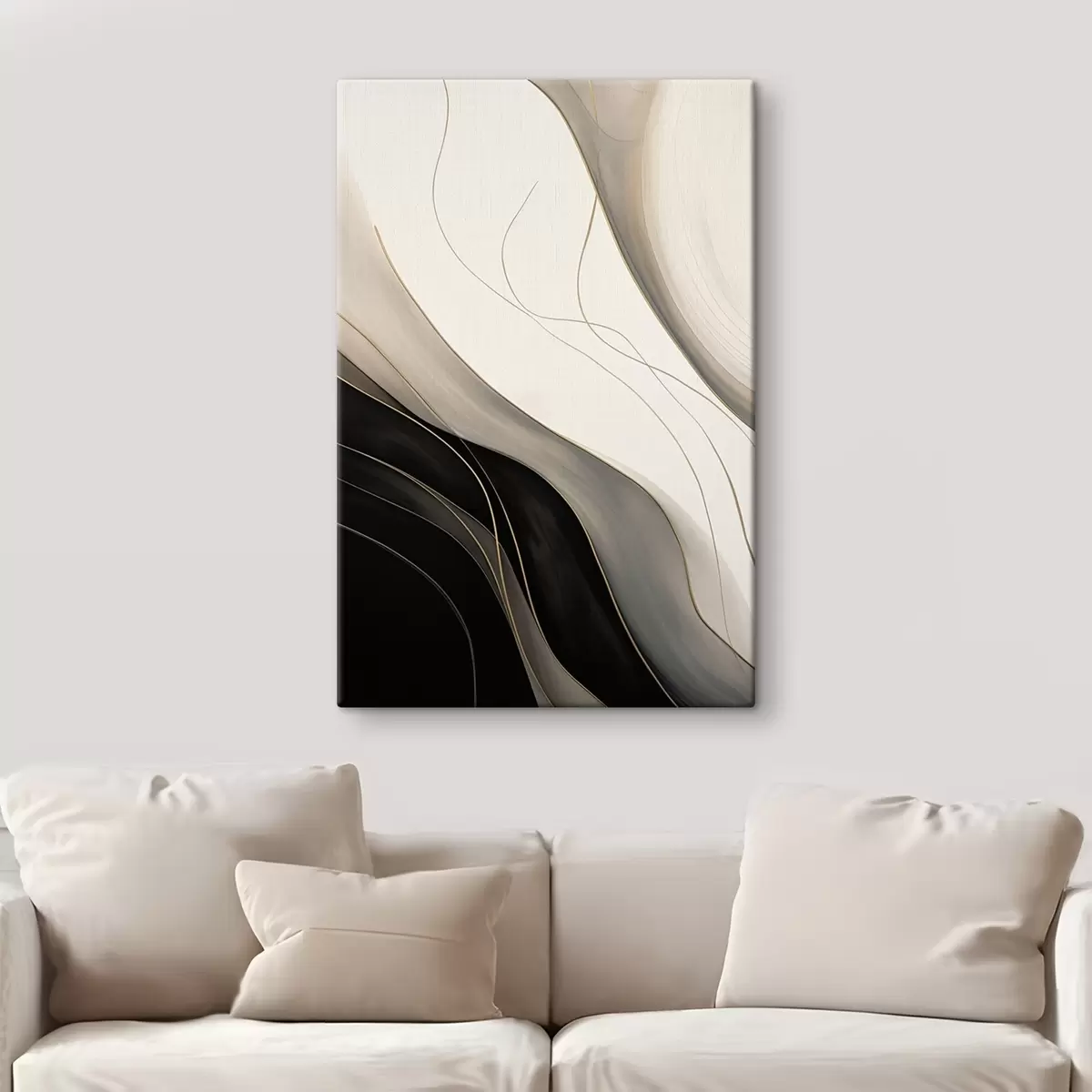 Cuadros Ondas en negro y beige con finas líneas ocres. Nr s46541
