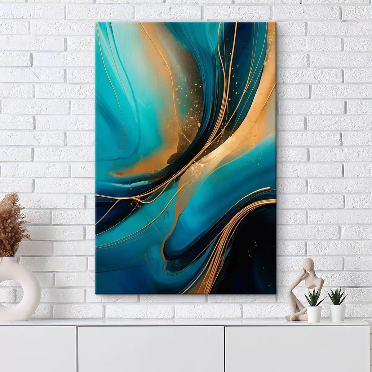 Cuadros Flujo turquesa con finos hilos ocres. Nr s46543