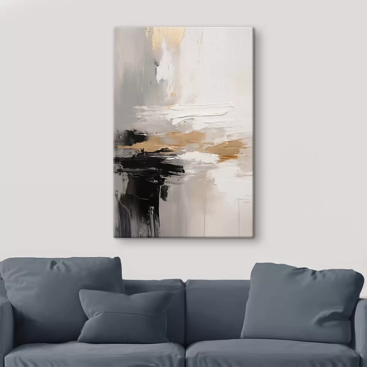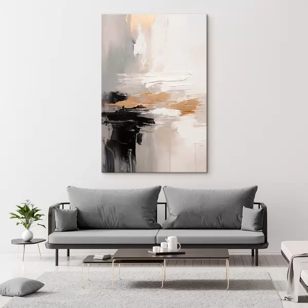 Cuadros Pinceladas en tonos nude con capas contrastantes en negro y ocre. Nr s46544